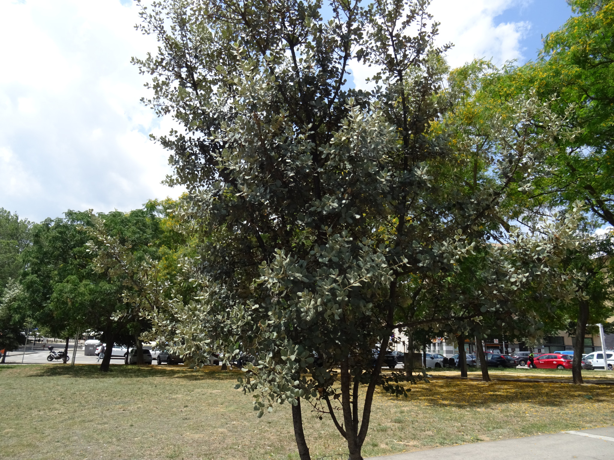 El Quercus ilex L és de la família de la fagaceae, originari de l’àrea mediterrània. El nom comú en català és alzina. Quercus és el nom llatí de les alzines i els roures i ilex és el nom amb què els grecs anomenaven les alzines. L’arbre pot fer entre els 20 i els 25 metres d’alçada, amb capçada esfèrica, ampla i densa. L’escorça és llisa i de vers grisenc, però amb el pas dels anys aquestes prenen unes tonalitats grises i amb escletxes verticals. Les fulles, fan entre 3 i 8 centímetres de llarg, de color verd fosc i brillant i, per l’interior són clars i pubescents.