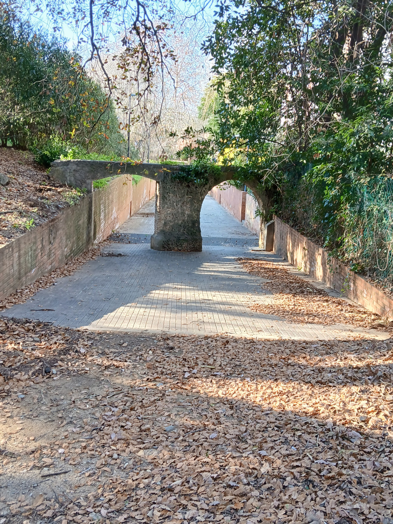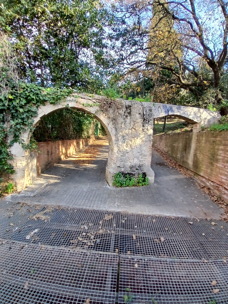 L'aqüeducte travessa la Baixada del Mas, salvant l'antic torrent, amb un desnivell a cota més alta al marge dret del torrent i més baixa al marge esquerre. Per tant, per la seva inclinació, l'aigua circularia per gravetat del marge dret a l'esquerra.