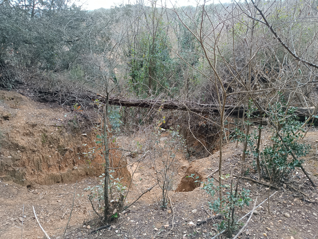 Avui en dia el jaciment presenta l’aspecte d’un retall d’aproximadament 3 metres de profunditat, força diferent del que devia tenir en el moment del seu ús funerari. Aleshores aquest indret era una balma, un petit abric natural format per una visera de roca calcària, actualment desapareguda. L’espai va patir l’acció erosiva i d’arrossegament de fang, provocada per episodis de pluja intensa i/o torrencial, que va formar sobre la balma una acumulació de sediments de més de dos metres d’espessor, alterant de forma significativa l’orografia de l’indret. D’altra banda, és probable que l’àrea funerària fos més gran i s’estengués cap a l’extrem oriental, paral·lela al barranc de la Font de la Riba.
