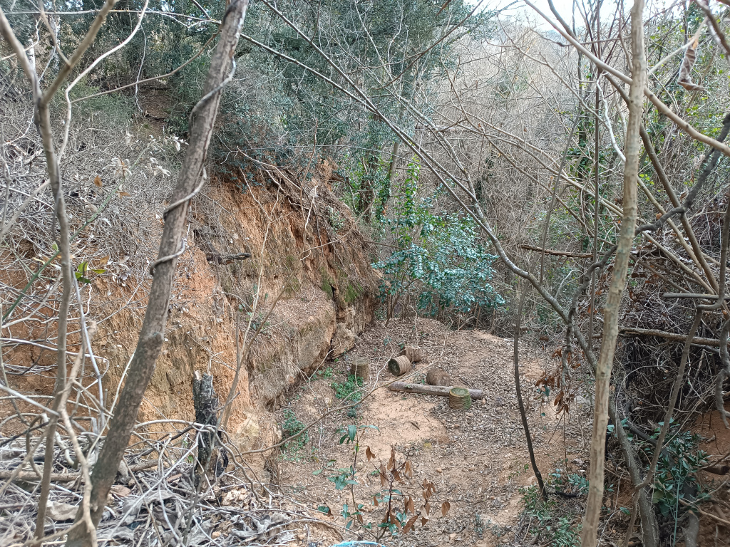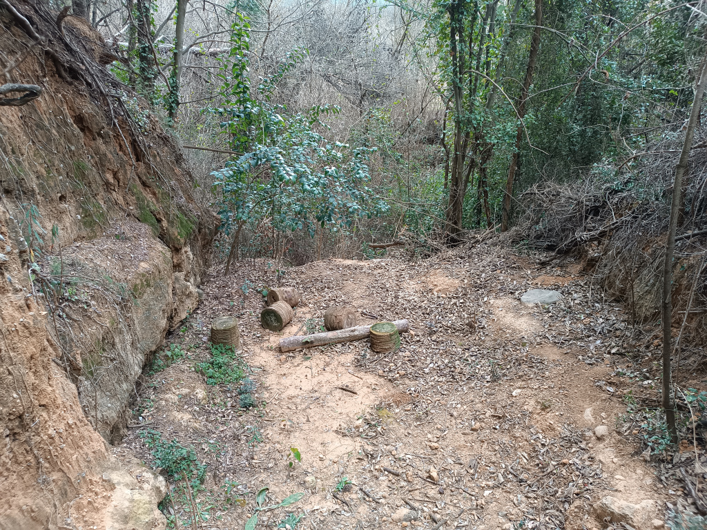 El jaciment es troba en un terreny que pertanyia en origen a la masia de Can Ponsic, posteriorment cedit pels antics propietaris a una congregació de caputxins amb la condició de mantenir-los sense edificar; aquesta és la raó per la qual s’ha conservat la zona.