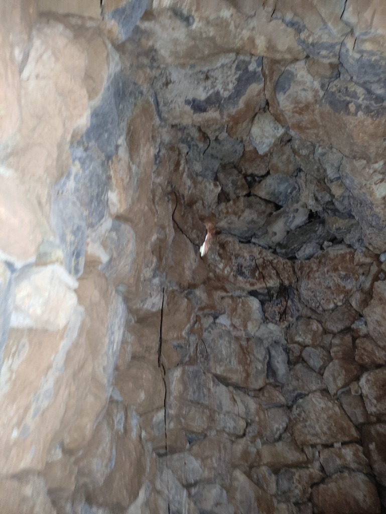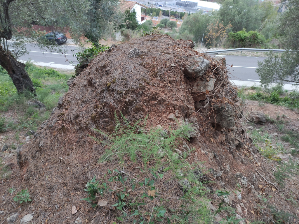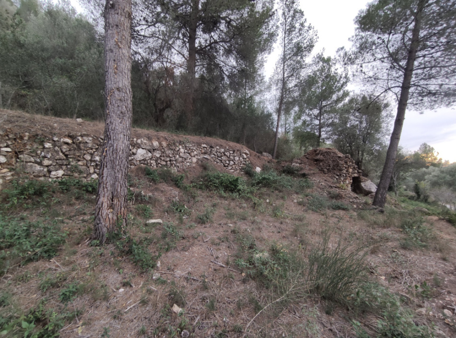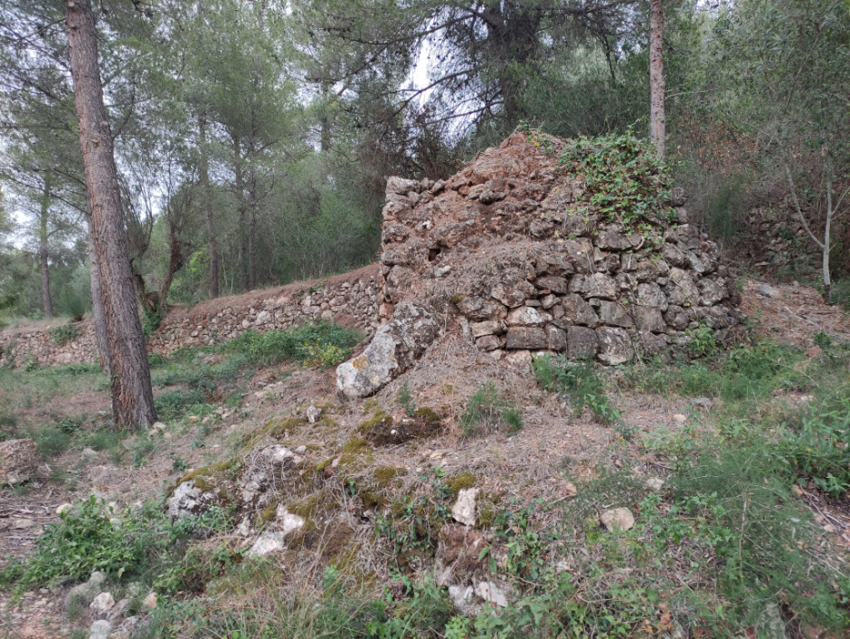 Es troba al vessant de la muntanya i a l’entorn hi trobem diversos murs de pedra per anivellar el terreny. Molt possiblement, per context i dimensions, es tractaven de feixes de vinyes.