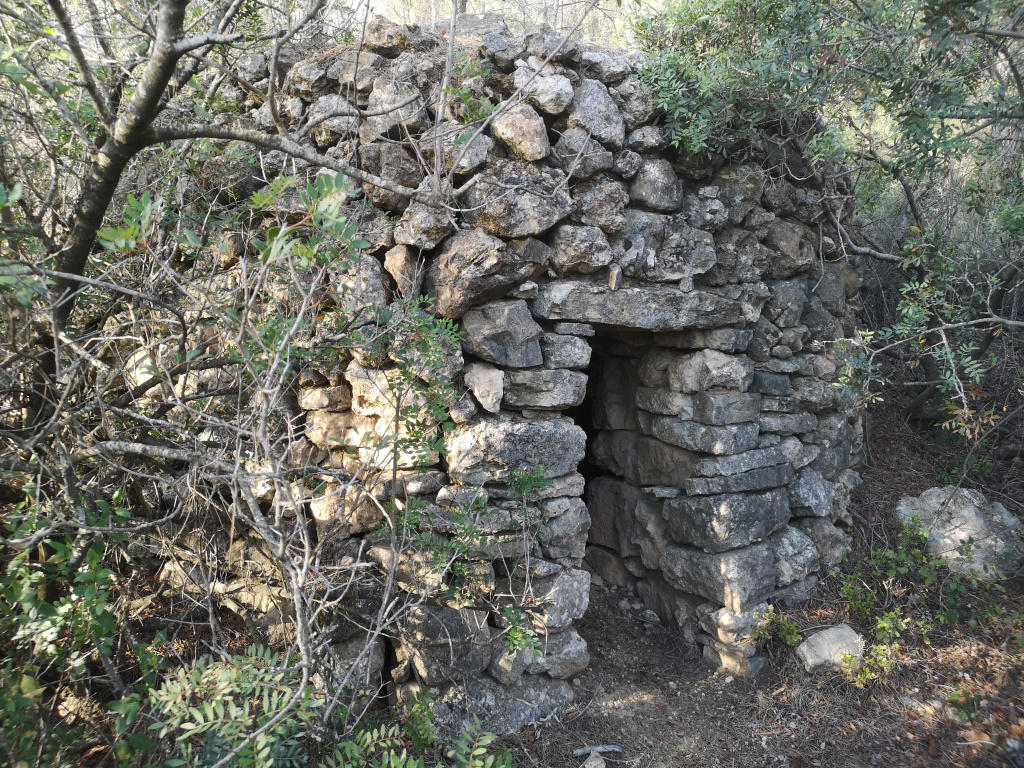 Cabana de pedra seca de planta circular de falsa cúpula. La barraca és aèria i aïllada i de dimensions reduïdes. Cal destacar la porta de llinda plana i que la falsa cúpula està tancada amb una llosa plana. Aquesta llosa es troba envoltada de matolls per consolidar la capa de terra que cobreix la resta de la coberta.