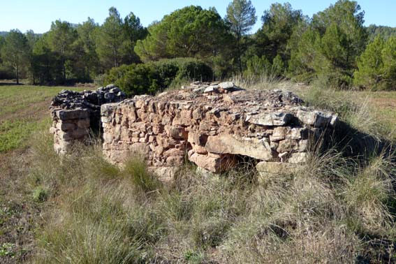 Barraca de pedra seca de planta rectangular, amb porta de llinda i coberta de falsa cúpula que té un forat central. Té adossat una mena de cobert, que es troba mig esfondrat.