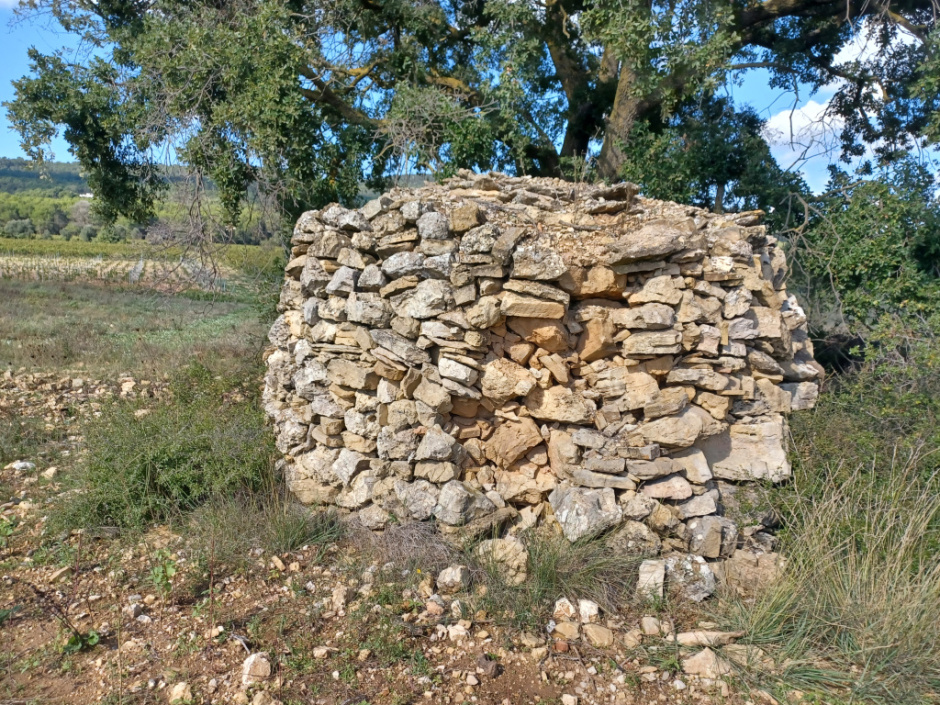 Barraca de planta circular construïda amb la tècnica de la pedra seca.