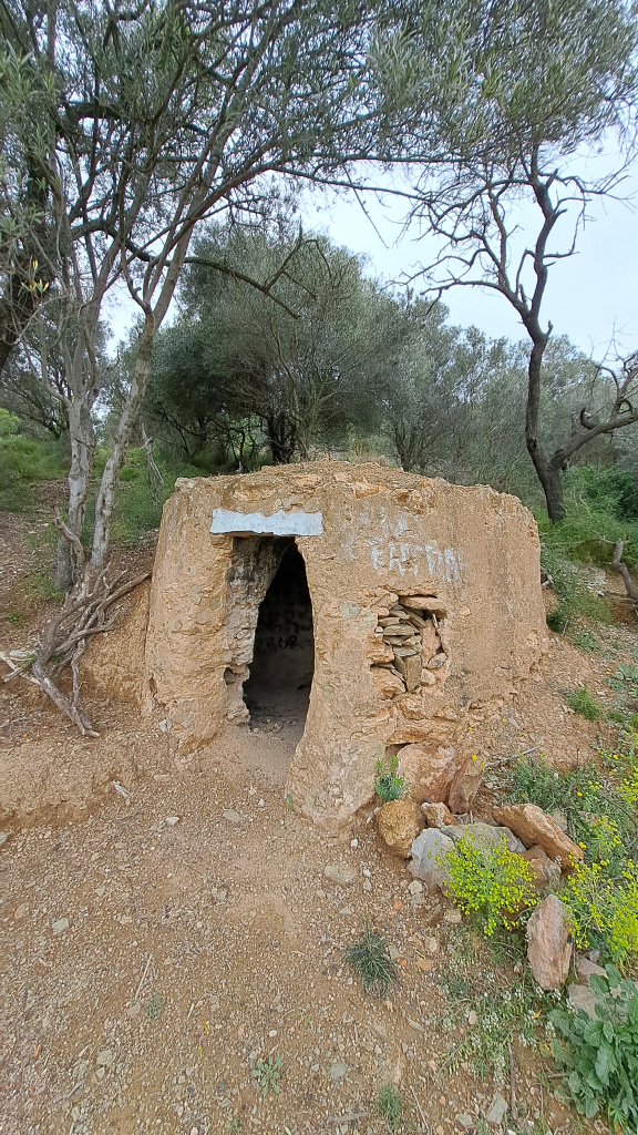 Barraca de vinya de planta circular orientada al sud. Correspon a la tipologia constructiva aèria aïllada.