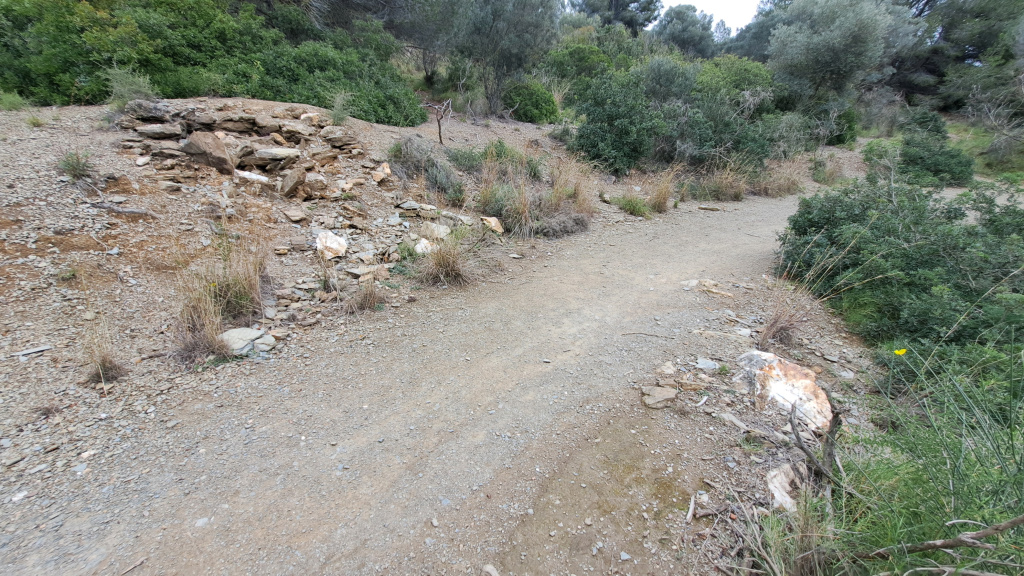 Barraca de vinya de pedra seca totalment enrunada. Situada al marge del camí de can Coscoll, s’intueix una estructura de planta circular i possible tipologia constructiva aèria adossada al marge.