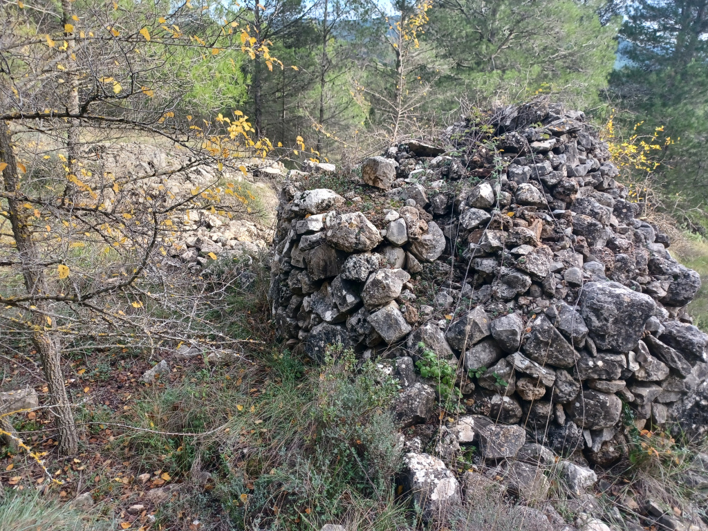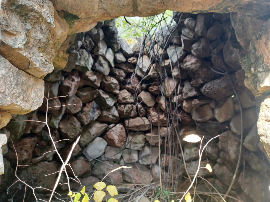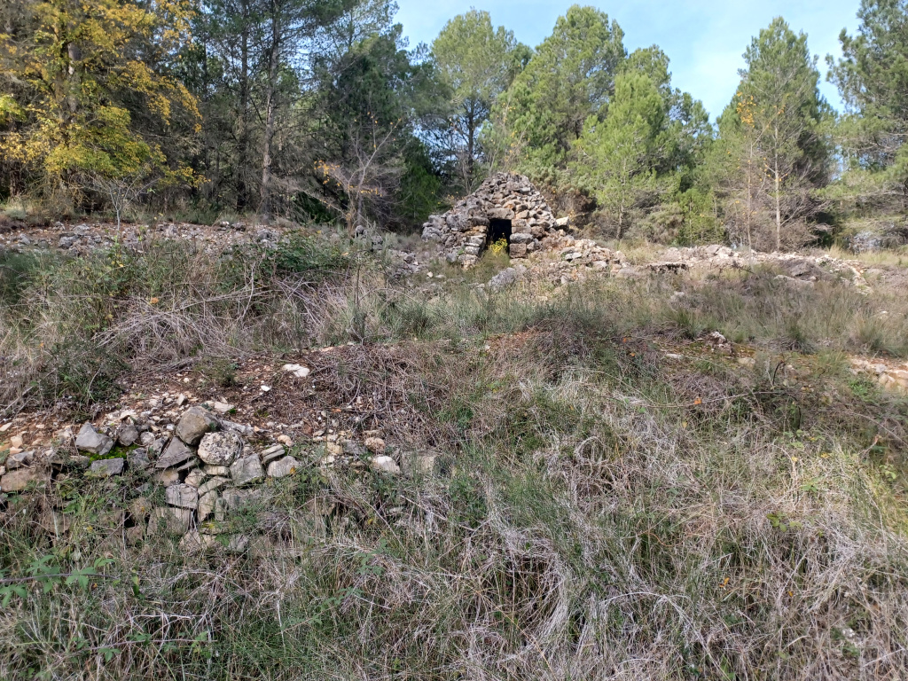 Barraca de planta circular construïda amb la tècnica de la pedra seca.