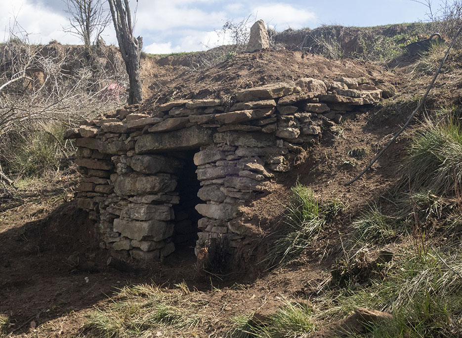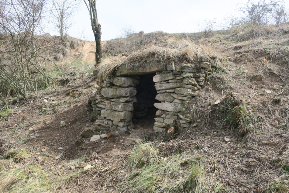 Actuacions de conservació realitzades: 09/03/2023 Es neteja l'entorn de la cabana, es cobreix la coberta amb terra i vegetació i s'omplen buits del mur amb pedres.
