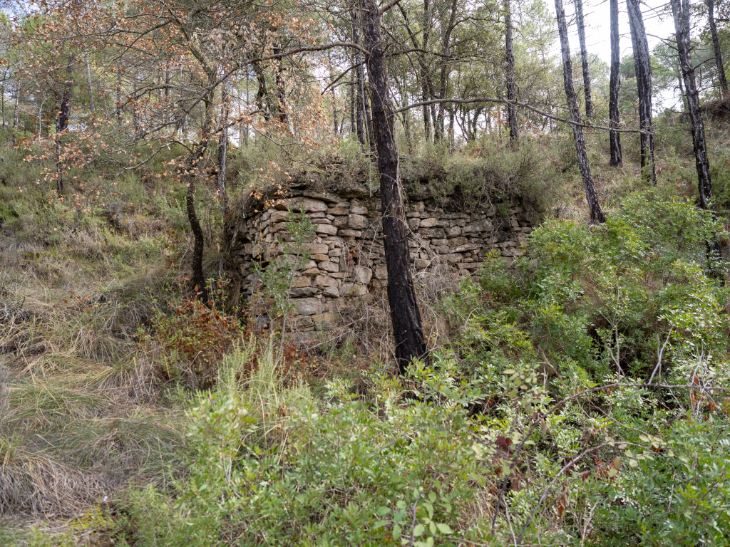 La part esquerra i posterior de la cabana exterior actualment forma part del terreny que l'ha anat envaint.