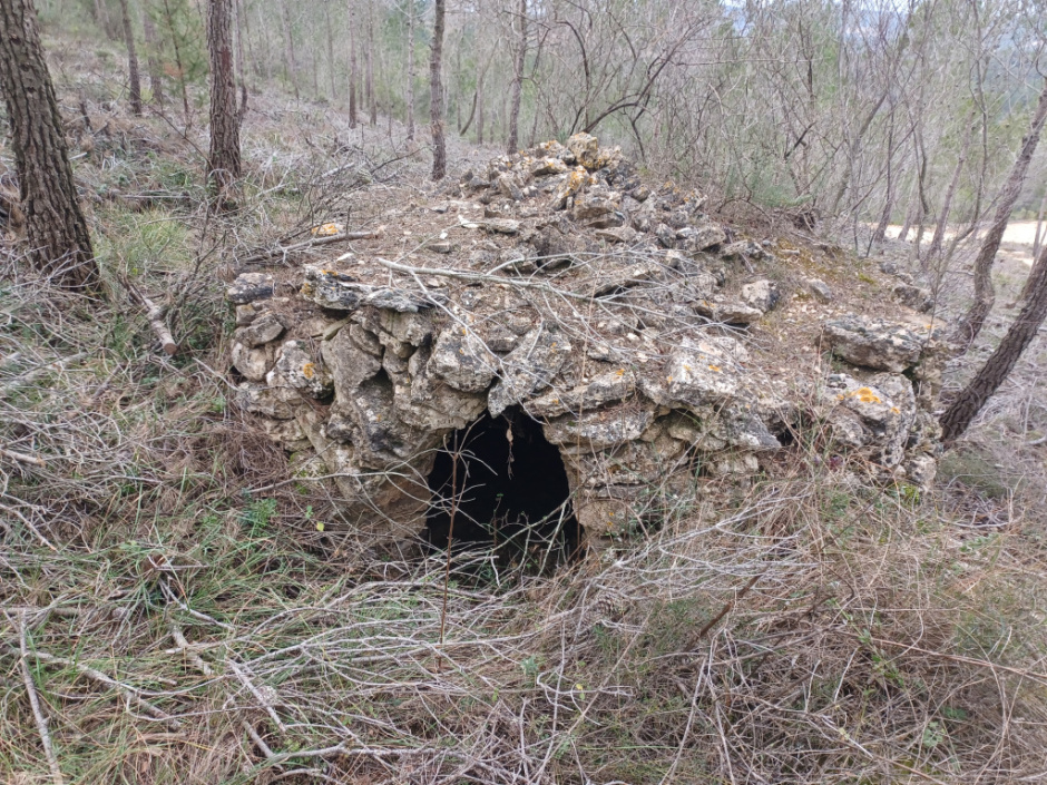 Barraca de planta circular construïda amb la tècnica de la pedra seca.