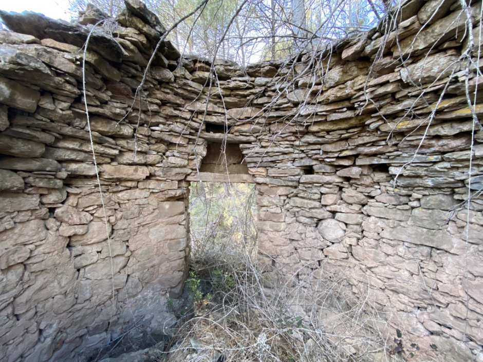 L'obertura principal té una doble llinda: una llinda ampla i prima i a sobre una llinda més gruixuda i estreta que en la part interna deixa l'espai que s'ha aprofitat per fer-ne un armari i una petita cavitat al damunt d'aquest. El mur de l'obertura principal està construït amb capes superposades on es combina una pedra gran i dues pedres de menor mida a sobre.