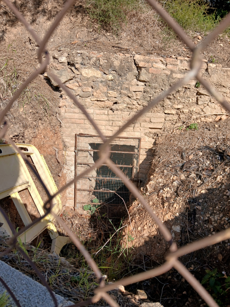 La petita portella d'entrada a la galeria, que s'obre al perfil del terreny natural, té brancals i llinda de maó massís vist. Per sobre de la part construïda en maó hi ha un llenç de pedra. La porta queda protegida per una reixa metàl·lica.