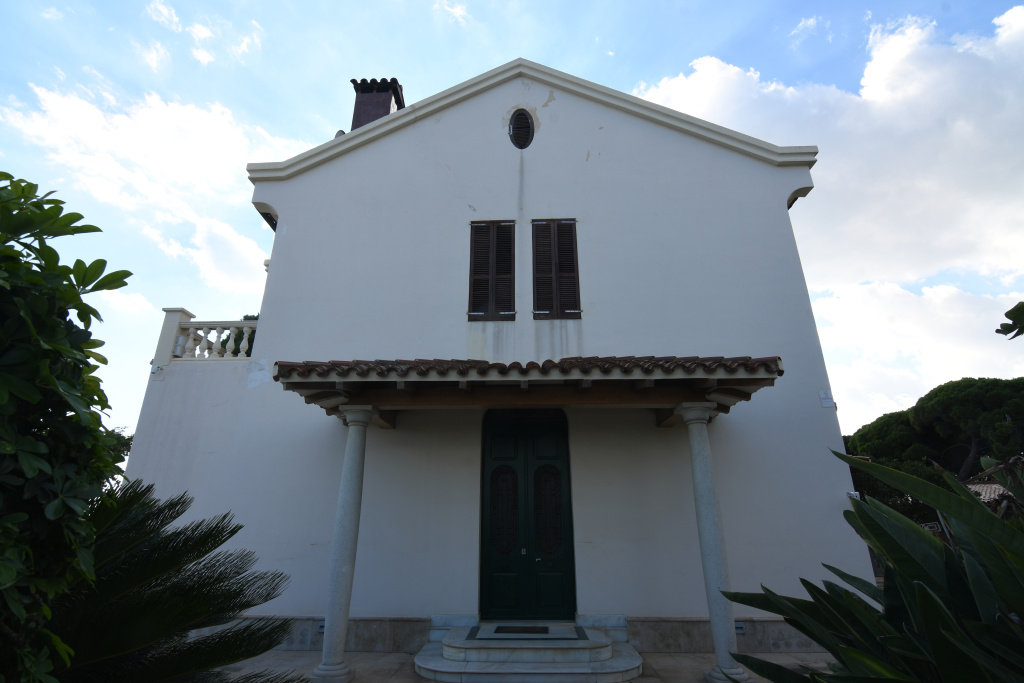 De la façana meridional en sobresurt una tribuna de coberta plana en forma de terrat amb balustrada. A la façana de llevant hi trobem l'entrada a la casa, protegida amb un porxo suportat per dues columnes d'estil clàssic, amb coberta a tres aigües.