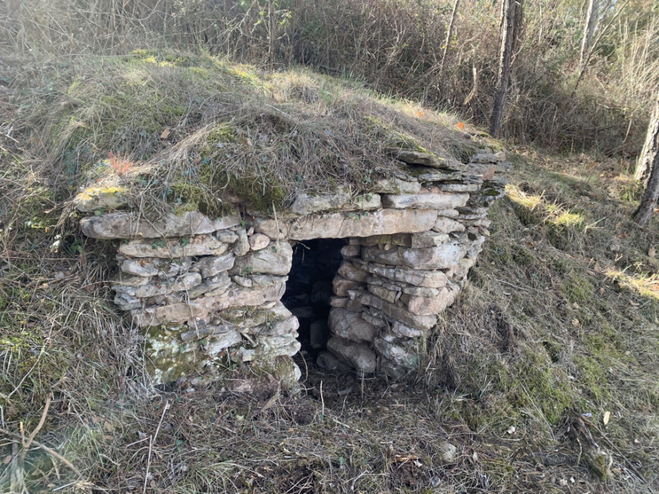 Cabana baixa, adossada al terreny de la muntanya, amb la part del mur esquerre recte i la resta ovalada. Té un ràfec per damunt de la llinda plana. Està construïda bàsicament amb pedres mitjanes i petites. La coberta, de falsa cúpula, té una capa al damunt de terra i vegetació. El fons de la cabana el forma bàsicament una roca del terreny.