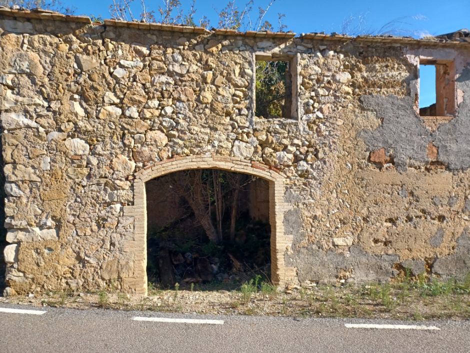 Consta de planta baixa i pis. A la façana principal s’hi obre l’entrada principal d’arc de mig punt de maons massissos a sardinell i un segon portal de dimensions més grans d’arc rebaixat de maons massissos en pla. A nivell de primer pis, hi ha dues finestres d’arc pla. L’interior està tot enderrocat.