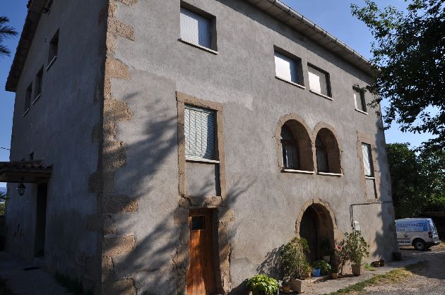 A la façana principal destaca la porta principal d'entrada de fusta amb una arc de mig punt i una altra porta de llinda recta a la seva dreta; a la primera planta i en l'eix de la porta hi ha unes finestres en forma de galeria doble amb arc de mig punt i columna de pedra central; a cada costat les antigues balconeres amb llindes i brancals d pedra, reconvertides en finestres. Les obertures de la segona planta i les de la façana de ponent són modernes.