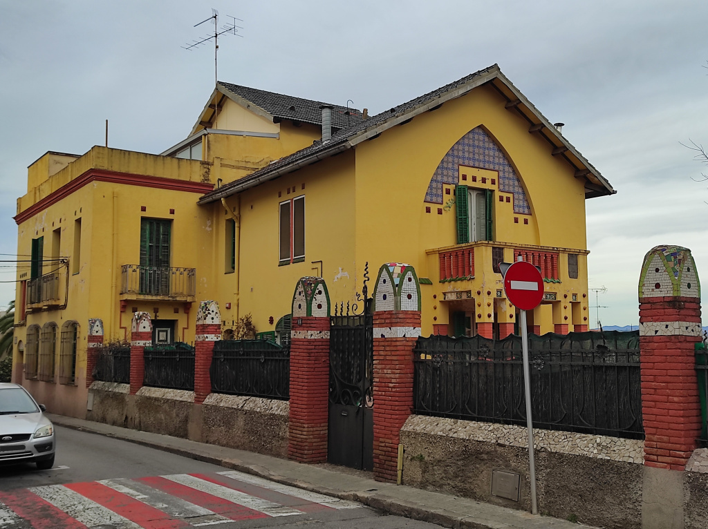 La façana principal, orientada al sud, és la que dona al jardí. En aquest cas, la simetria li dona més coherència. Al centre amb un altell elevat amb un gran finestral dividit en tres parts que formen una gran obertura amb arc apuntat en conjunt. La coberta del cos central de l'edifici és a doble vessant, i hi podem veure dos finestrals més amb arc de mig punt i dos balcons al segon pis. Finestrals rectangulars decorats amb aplicacions ceràmiques flanquegen cada ala de la casa. El terrat de la casa, ubicat a la cantonada entre el carrer Sant Lluís i el carrer de Montserrat està rematat amb una barana balustrada.