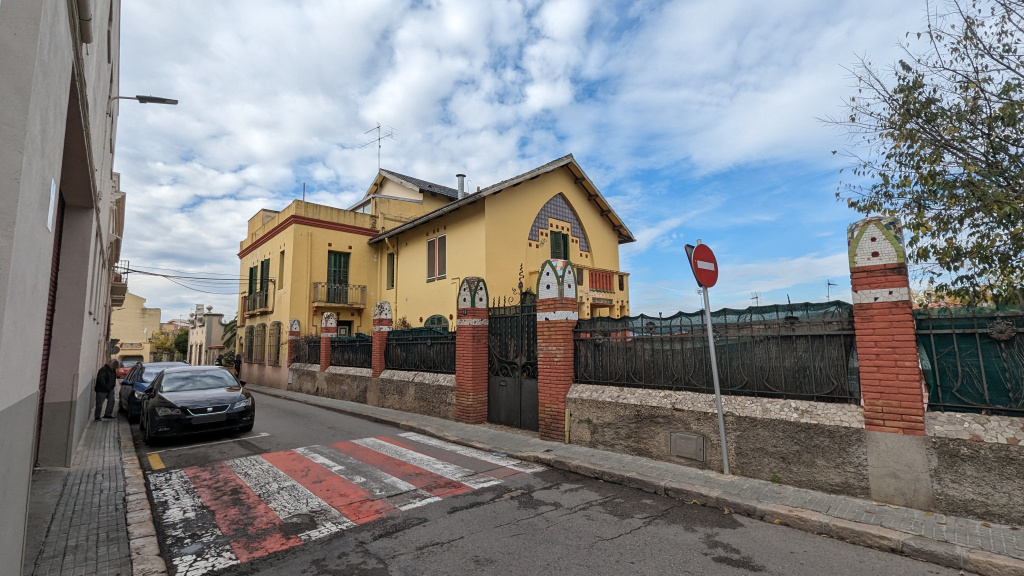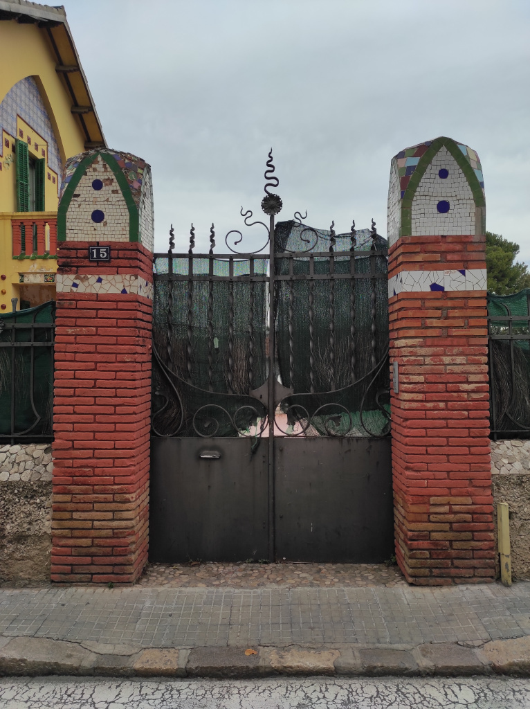 La planta noble disposa d'un vestíbul general i grans salons en el que destaquen els materials ceràmics en plafons adossats a les parets, pintures i mobles, així com la gran làmpada del menjador. A l'exterior, la façana i el mur de tancament del jardí destaquen per les seves aplicacions ceràmiques i notables reixes de forja. Cal fer menció de la decoració dels pilarets del mur fets amb trencadís. La façana d'accés a la casa la trobem orientada al carrer Sant Lluís, la qual és una façana força simple, que mostra ja alguns detalls decoratius discrets. Consta d'una porta senzilla acabada amb arc de mig punt i un trencadís ceràmic decoratiu. A la planta baixa hi trobem també tres grans finestrals, protegits amb grans reixes de forja. Sobre la porta d'entrada una finestra rectangular dividida, dos balcons d'ampit amb barana de forja i una última finestra. Totes les obertures inclouen discretes aplicacions ceràmiques vitrificades a la part superior. Finalment, una gran cornisa tanca la coberta plana de l'edifici.
