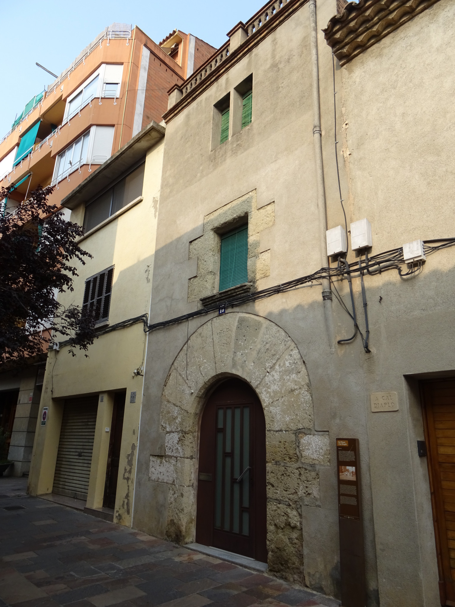 A la planta baixa un portal dovellat de punt rodó ocupa gairebé tota l'amplada. Les dovelles són de mida molt gran i, a la dovella central, hi ha la següent inscripció: "LLUIS JANÉ - DE SANT MADIR - MDXLI". Al primer pis hi ha una sola finestra, centrada i emmarcada per carreus de pedra treballats, amb llinda plana i ampit motllurat. A la planta superior hi ha dues finestres simples, que són posteriors. El coronament de l'edifici és format per una motllura feta de maó i rematada amb una balustrada de peces de morter modelat entre pilastrons. La teulada és a dos vessants.