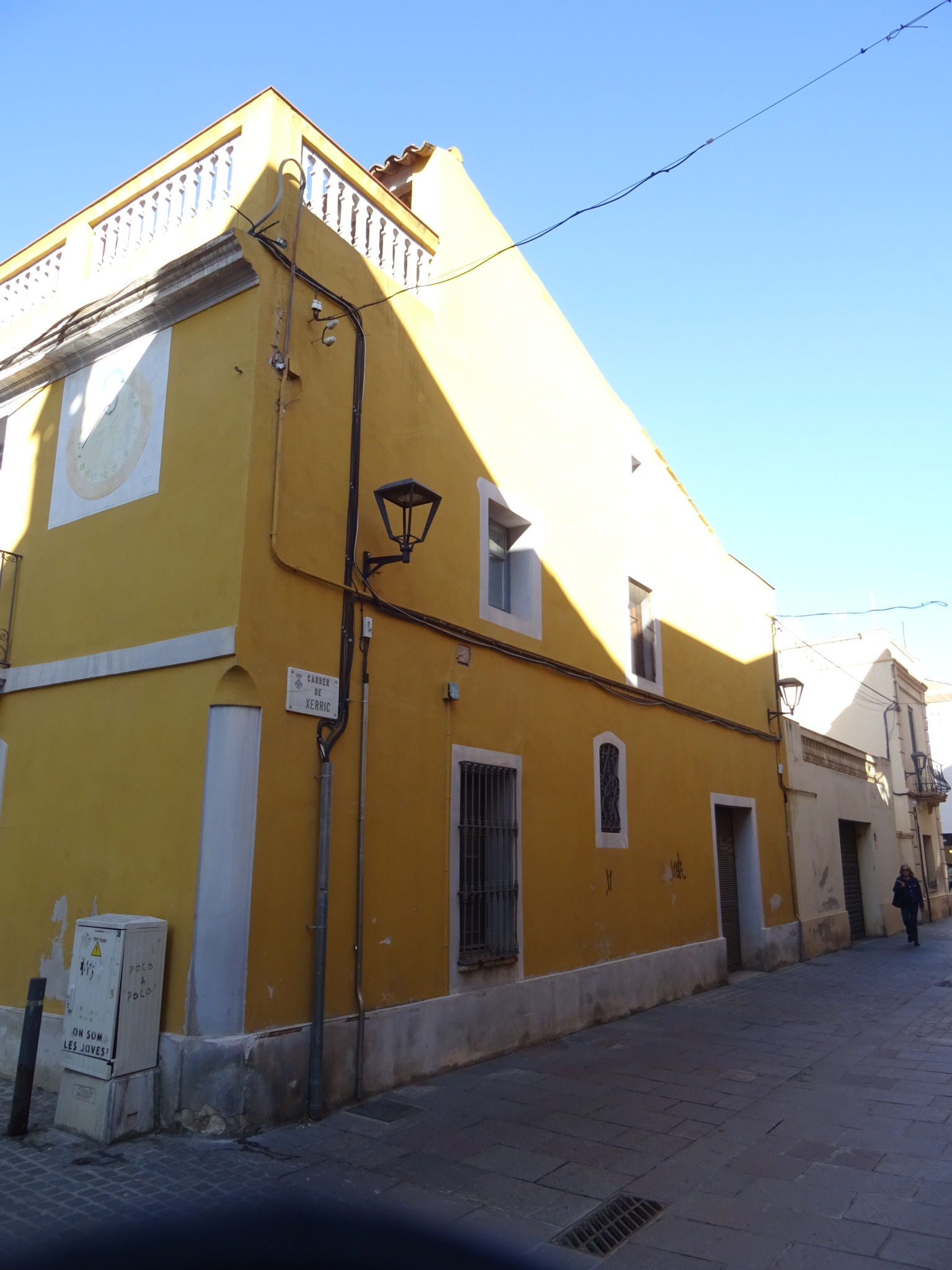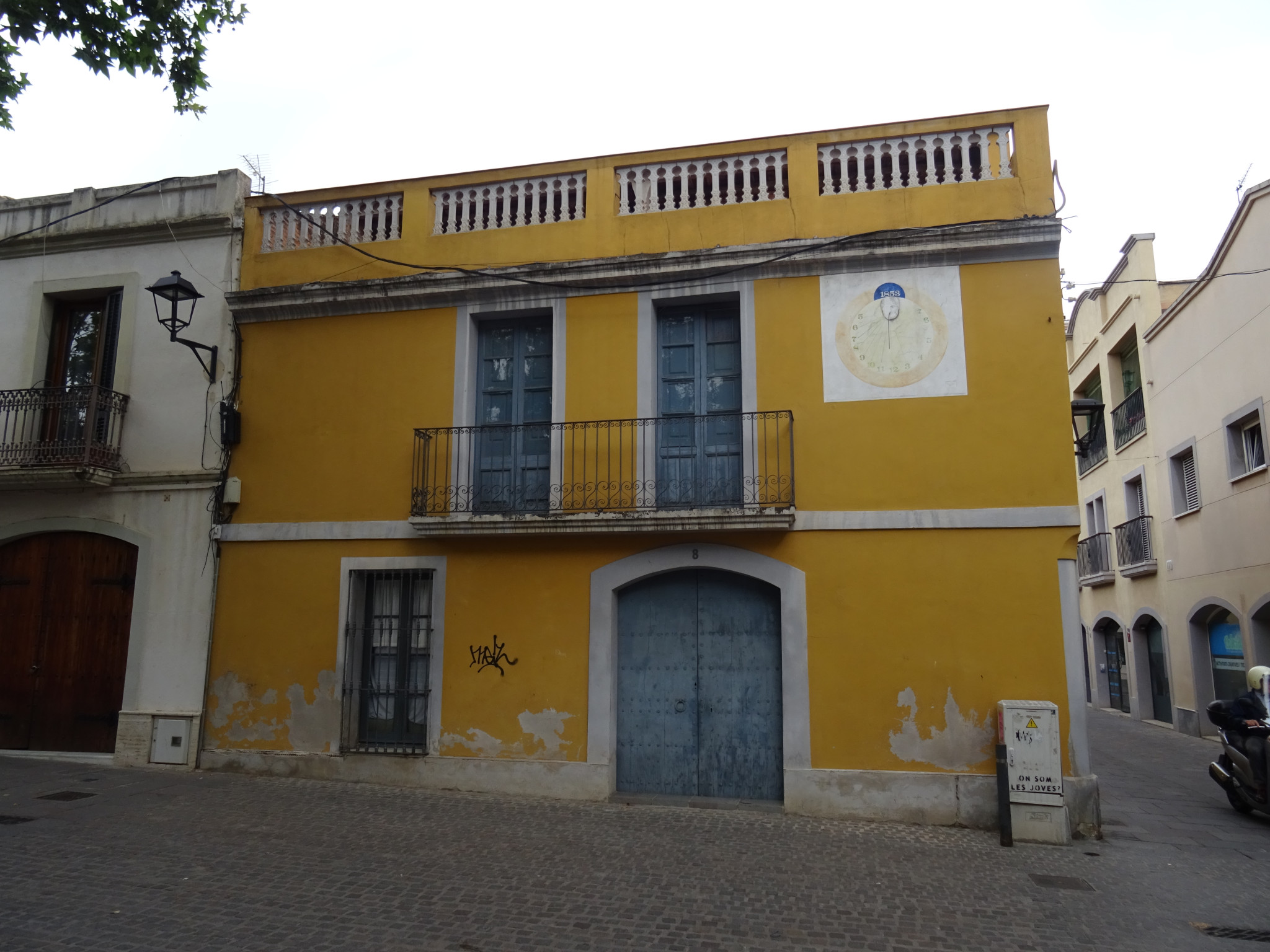 La façana conté un rellotge de sol, pintat amb estuc, amb la data 1853.