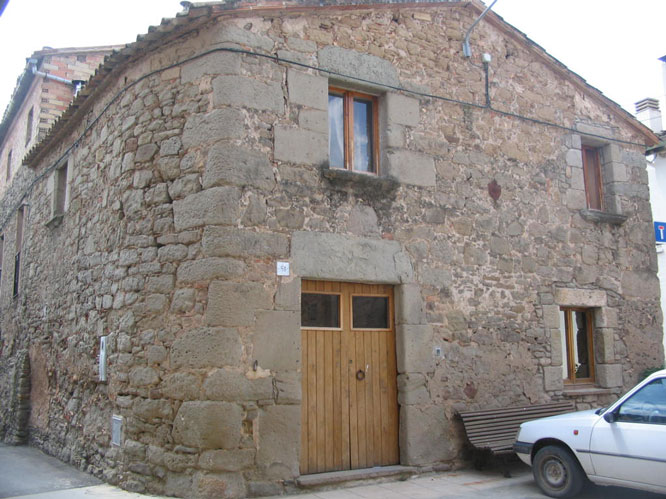 La façana oest té tres obertures, dues finestres emmarcades amb pedra treballada repicada i una finestra emmarcada amb pedra bisellada. També és destacable la llosa de grans dimensions que hi ha integrada al mur.