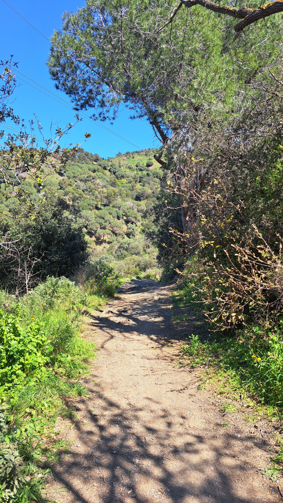 En el seu context immediat, el camí transcorre entre una combinació de brolla mediterrània i arbres aïllats que delimiten visualment la traça. Des del punt de vista paisatgístic, l’àmbit conserva una notable naturalitat, tot i la presència puntual d’elements contemporanis com torres elèctriques o línies aèries de subministrament.