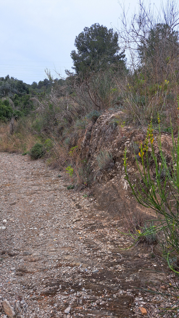 En el seu context immediat, el camí transcorre entre una combinació de conreus en regressió, brolla mediterrània i arbres aïllats, sobretot garrofers i oliveres, que delimiten visualment la traça. Des del punt de vista paisatgístic, l’àmbit conserva una notable naturalitat.