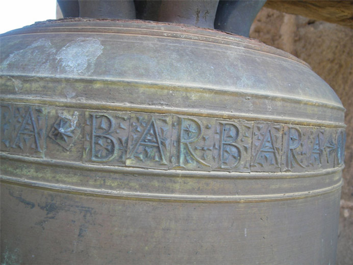 La campana petita es troba situada al campanar de l'església parroquial de Santa Maria de Merlès. Es tracta d'una campana de 65 centímetres de diàmetre i 69 centímetres d'alçada subjectada per sis nanses a un jou de fusta amb un contrapès de pedra subjectat amb tires de ferro forjat. Al jou de fusta hi ha gravada la data de 1879. La campana té batall de ferro sense ús però els quarts són tocats amb un martell mecanitzat. La decoració està formada per una faixa a la part superior de la campana amb una inscripció que hi posa "SANTA MARIA ET SANTA BARBARA ORA PRO NOBIS 1696". Cada lletra de la inscripció està treballada en baix relleu en un requadre de metall. A la part central hi ha una creu amb una peanya de quatre graons formada per petites peces romboïdals de metall, i està flanquejada per dos cors travessats per dues fletxes. Al costat dret de la creu hi ha la inscripció gravada dels mestres de les campanes: Juan Puigferrat Salvador, escrigas obres La part inferior de la campana està decorada per dos grups de fines motllures, de tres i dues línies respectivament, que s'alternen amb espais buits.