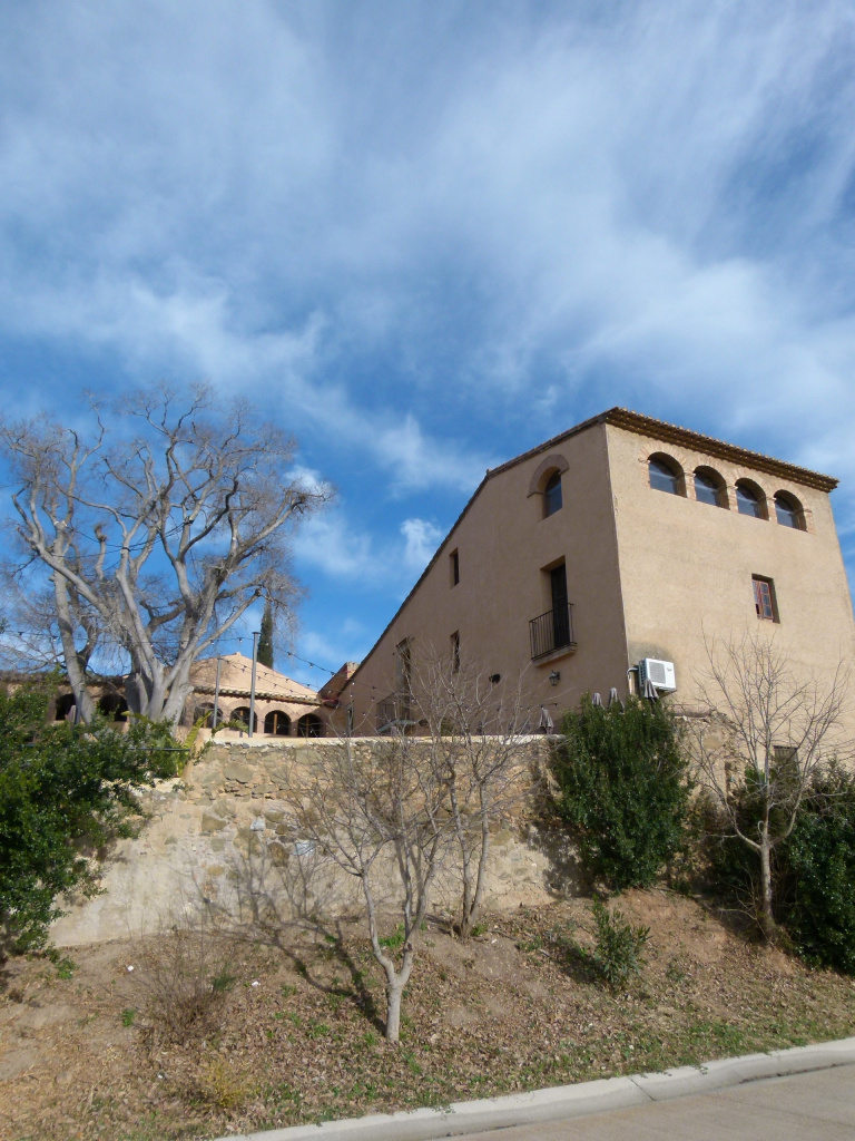 A l’extrem nord de la façana principal, s’adossa un cos amb una galeria d’arcs de maó al primer pis, a més d’altres dependències. Al mig del pati principal, cal destacar la presència d’un espècimen de lledoner centenari. Al mateix pati, situada a l’extrem nord, hi ha una font amb un safareig.