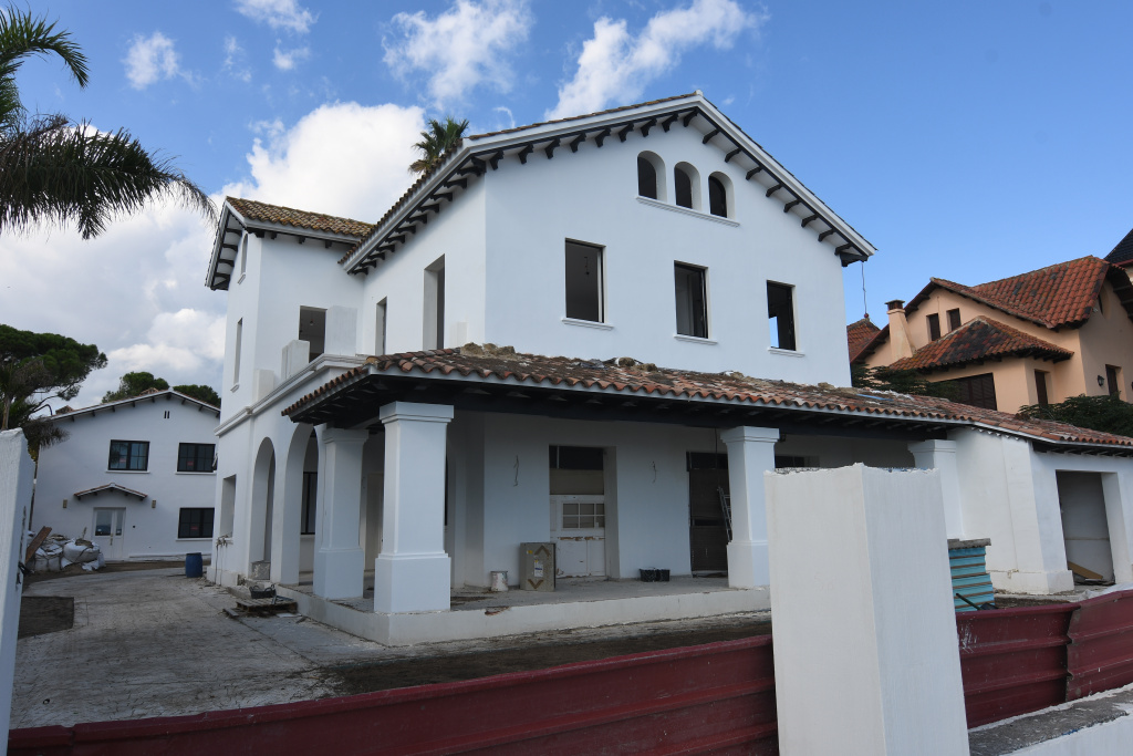 Els paraments són llisos, arrebossats i pintats de blanc, sense ornamentació. Les finestres són rectes a excepció de les de les golfes que són de punt rodó.