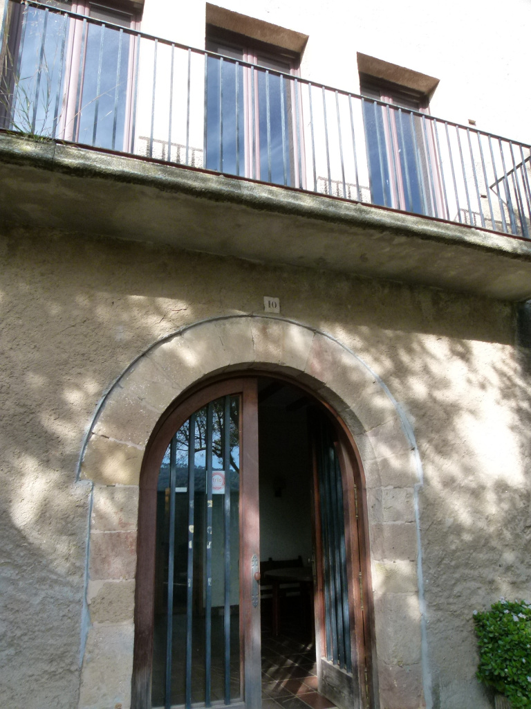 Centrat a la planta baixa es troba el portal d’entrada amb arc de mig punt adovellat i brancals de pedra treballada de manera acurada i regular, tan característic de l’arquitectura popular catalana. A la dreta de la porta hi ha una finestra també emmarcada per brancals i llinda de pedra.