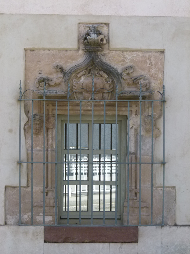 La primera planta es divideix també en tres eixos verticals que consten de tres obertures en forma de finestra amb marc de llinda i amb balcons de ferro forjat que donen personalitat a la façana i que ofereixen una vista directa als jardins.