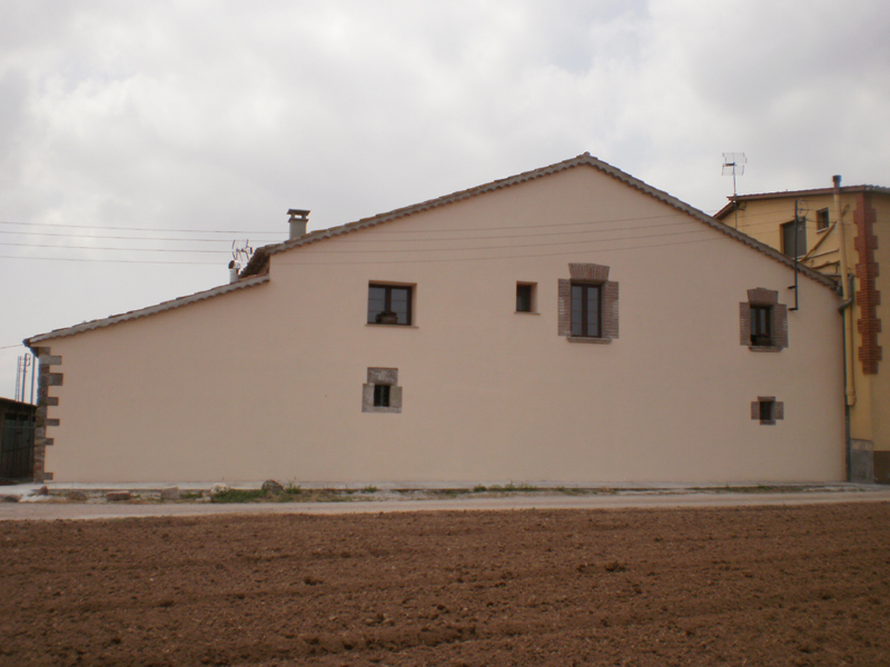 És un edifici de planta rectangular que s'estructura en tres crugies. Consta de planta baixa, pis i golfes i té la coberta a dos vessants amb el carener perpendicular a la façana. El frontis es composa simètricament segons tres eixos d'obertures, totes elles d'arc pla de pedra excepte el portal d'arc de mig punt adovellat. En aquest, la clau està inscrita amb l'any "1608". Les finestres de la planta baixa eren són d'arc pla arrebossat de factura moderna, que en la darrera restauració s'han pintat imitant la pedra. Entre les finestres del pis hi ha un rellotge de sol esgrafiat que ha estat restaurat amb molt d'encert. En haver estat suprimit en nivell de les golfes s'ha tapat la finestra que hi havia. A la façana de llevant s'ha adossat un cos annex d'un sol nivell d'alçat i coberta a una vessant, que tenia un portal d'arc rebaixat ceràmic. Les obertures de la façana posterior estan disposades de forma aleatòria i són d'arc pla, ja sigui arrebossades, de pedra carejada o ceràmica. El revestiment exterior es manté arrebossat i pintat. Al costat de ponent s'hi ha adossat un volum modern que supera en alçada al de la masia.