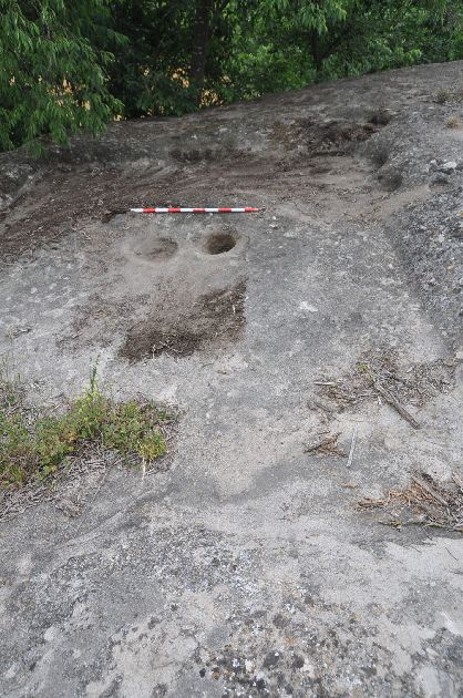 Al costat mateix de la casa damunt la placa de roca s'hi pot observar una tina (2'5 m de diàmetre)i la base d'una premsa, possiblement de vi, rebaixades a la roca, amb els corresponents forats.