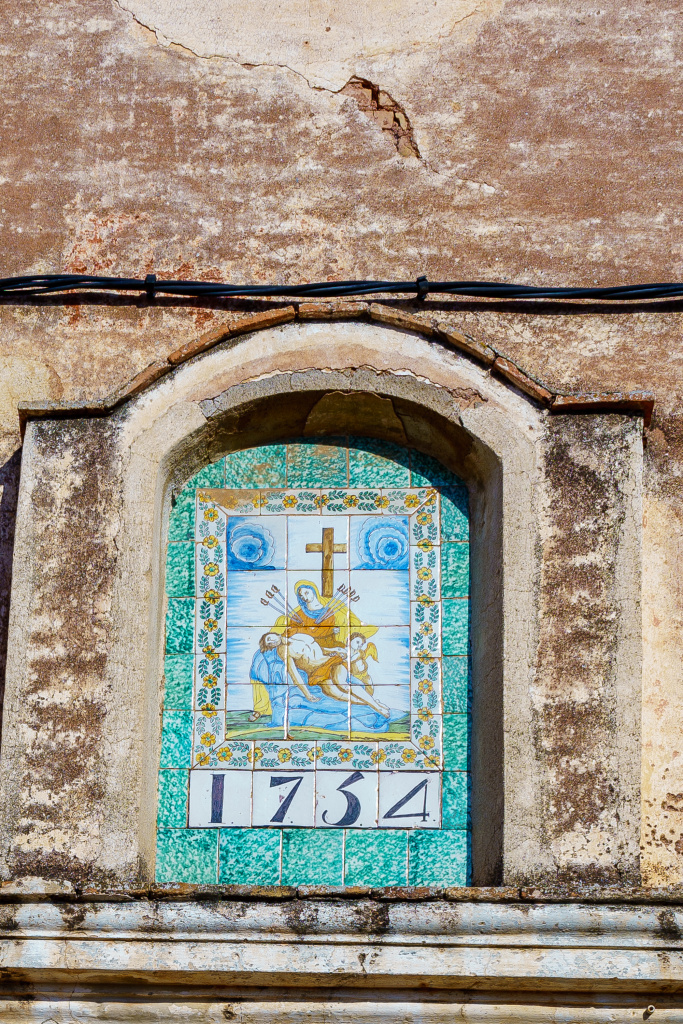 Damunt del porxo de la façana de la capella, hi ha una Verge Dolorosa amb el Crist a la falda, elaborada amb rajola policromada de València. Aquesta rajola, datada de 1754, presenta una escena religiosa amb colors intensos, tot i que també necessita una neteja per preservar-ne la bellesa i el detall, especialment al marc d'arc de mig punt.