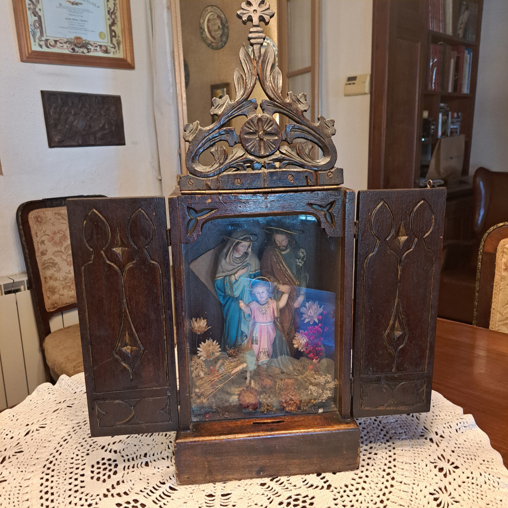 Capella de visita domiciliària que circula per diverses cases del Barrii dels Gats. Es tracta d'una capelleta de fusta gravada amb motius gòtics i coronada amb una creu, a l'interior de la qual hi ha la imatge de la Sagrada Família. Sota la capella hi ha un petit calaix on es dipositen les aportacions. A la part de darrera hi ha enganxat un paper amb els noms de les cases on passa, seguit de "TORNEM A COMENÇAR / GRÀCIES PER LA COMPANYIA DE NOMÉS DOS DIES".