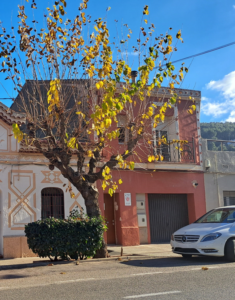 L'habitatge és de línies simples. La façana està pintada d'un color vermell terrós, amb una porta d'entrada metàl·lica que no sembla original, a la part inferior dreta.