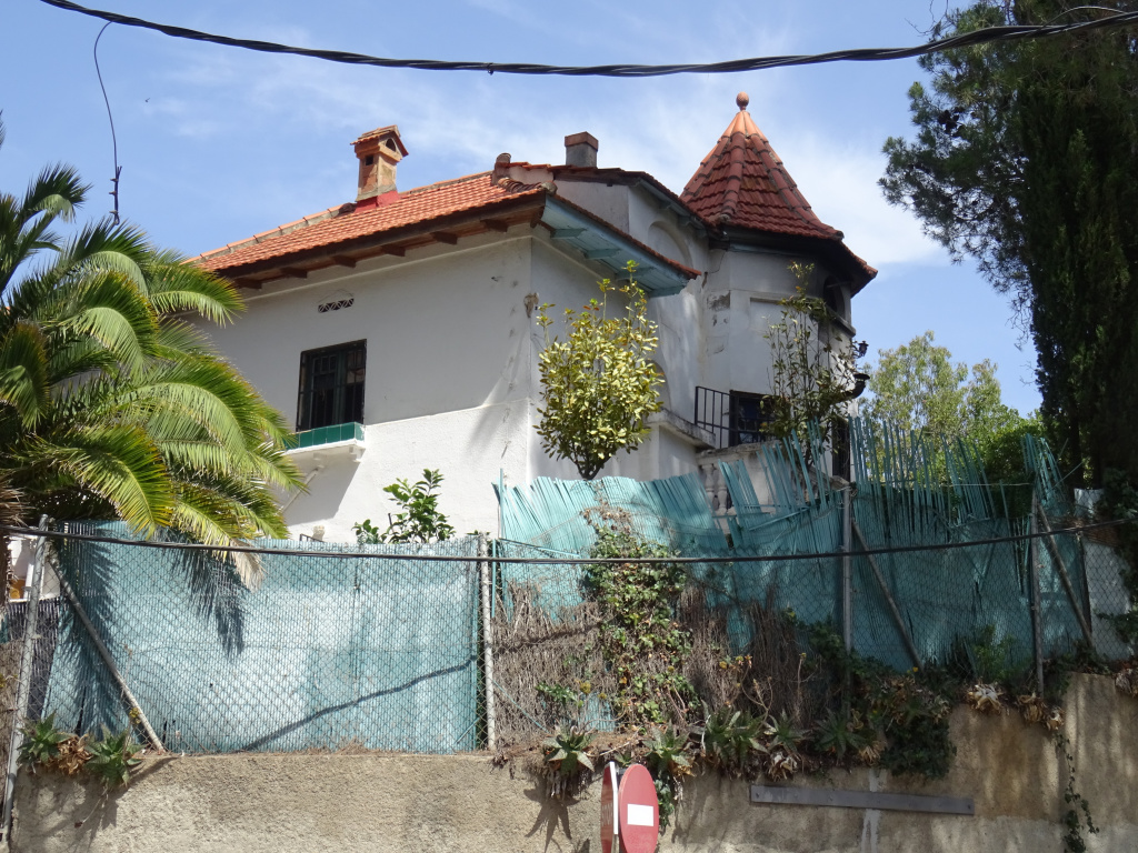 La façana del carrer Diputació presenta dos cossos a diferents alçades, més la torre a l'extrem dret. La torre és de base quadrada al primer pis i després es transforma en planta octogonal. Al nivell del primer pis té una balustrada feta amb peces de morter modelat i, a la sotacoberta, una finestra en forma de mitja circumferència. La teulada és cònica, amb vuit cossos i rematada amb una pinya ceràmica. És feta amb teula plana i, als careners, amb teula àrab.