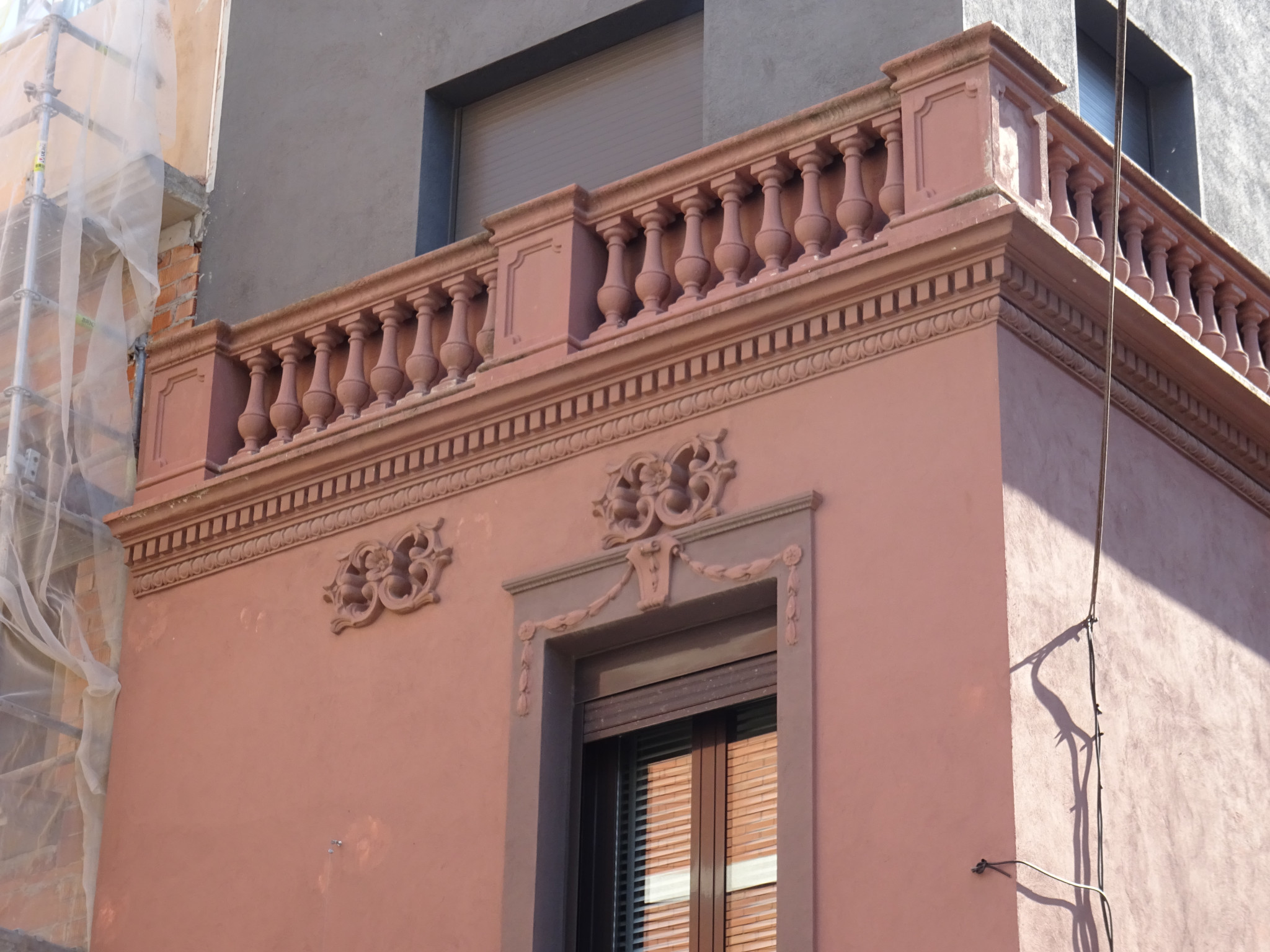 El pis afegit al terrat és un volum sense decoracions, amb finestres rectangulars i arrebossat de color fosc que contrasta amb el color terra de l'arrebossat de la part antiga.