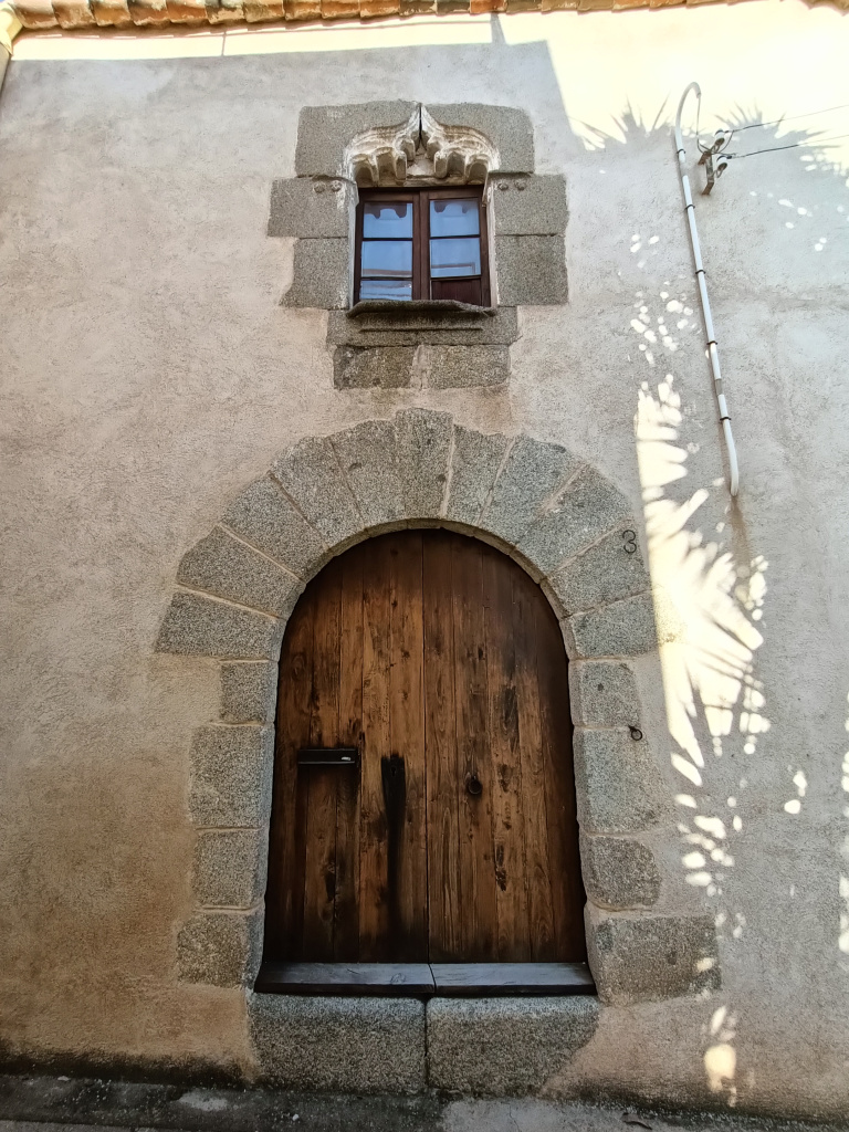 De la façana, en destaca el portal rodó dovellat i la finestra d'estil gòtic conopial, en el mateix eix de verticalitat. A l'eix més oriental s'hi obren dues finestres de llinda recta de pedra, com els brancals i els ampits. Són clarament posteriors al portal i la finestra gòtica. Entre les dues finestres, s'observa una pedra amb l'any 1597 gravat, que podria fer referència a una ampliació o reforma.