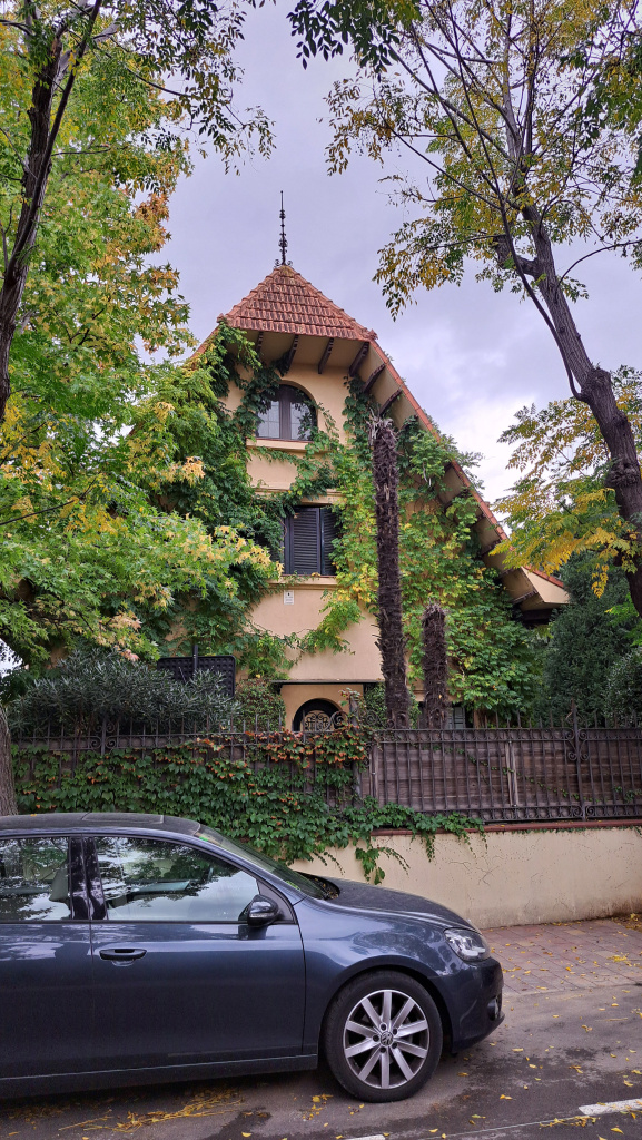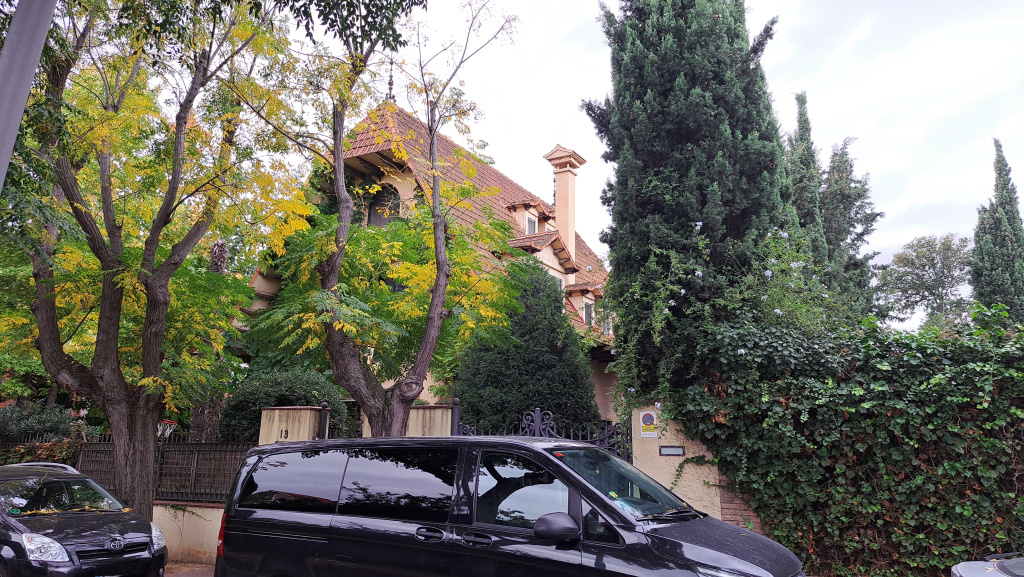 Tots els paraments exteriors del xalet estan arrebossats i pintats en color rosat.