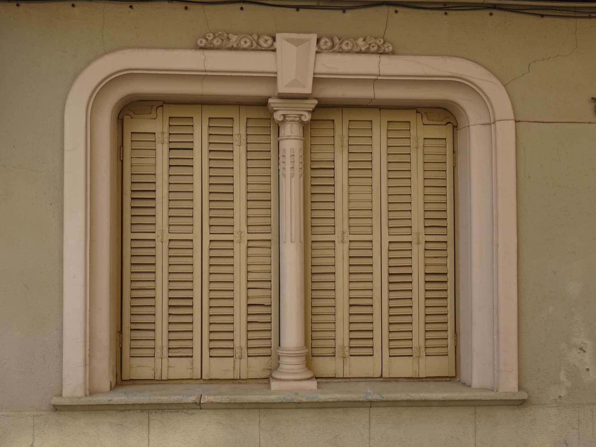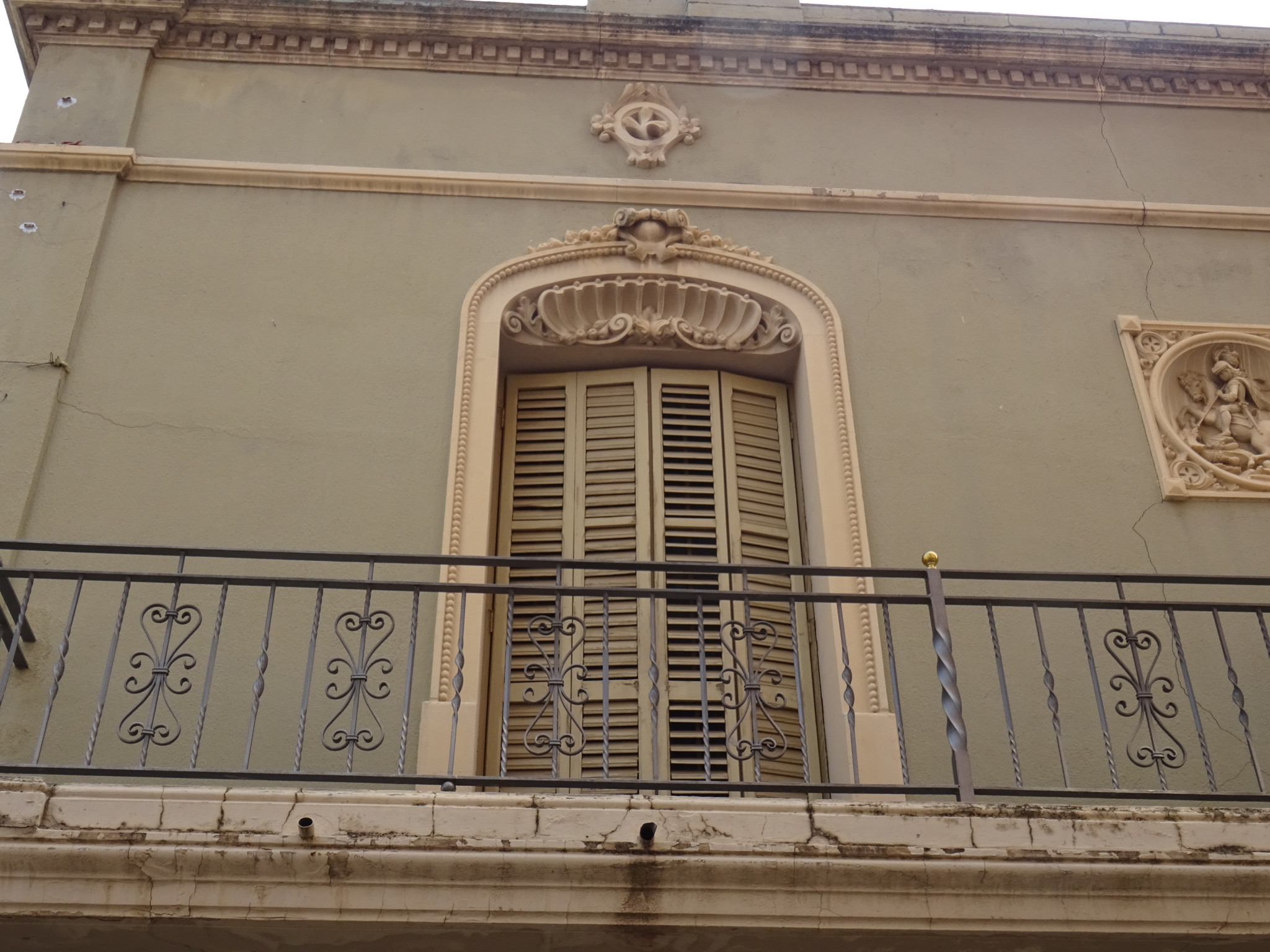 A la façana del carrer Dos de Maig les finestres tenen una disposició més irregular. Presenten un emmarcament engaltat decorat amb motllures. Les dues façanes comparteixen un fris al coronament on hi ha els espiralls de ventilació, fets de morter modelat. Al damunt hi ha una cornisa d'ordre jònic amb una banda de denticles. La façana lateral és rematada amb un frontis retallat.