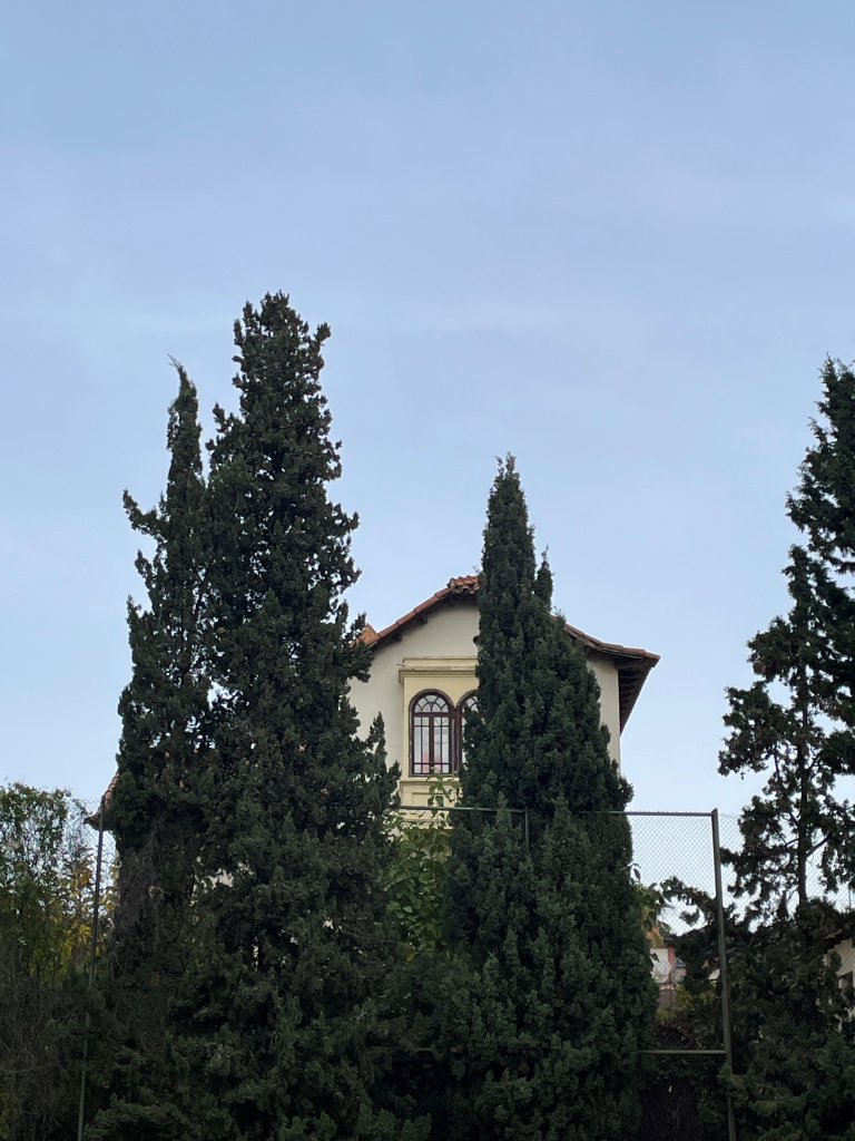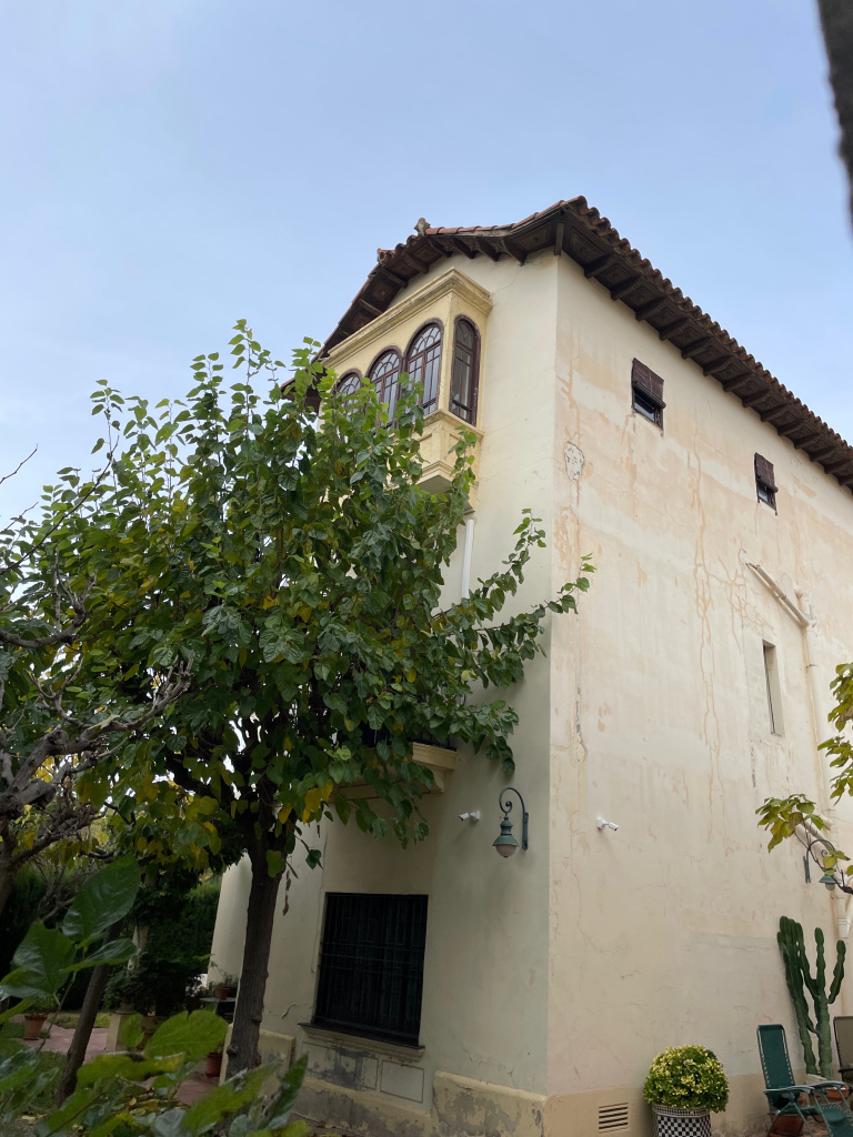 Tot l’edifici es rodeja per un frondós jardí que li dona privacitat i intimitat des de l’exterior.