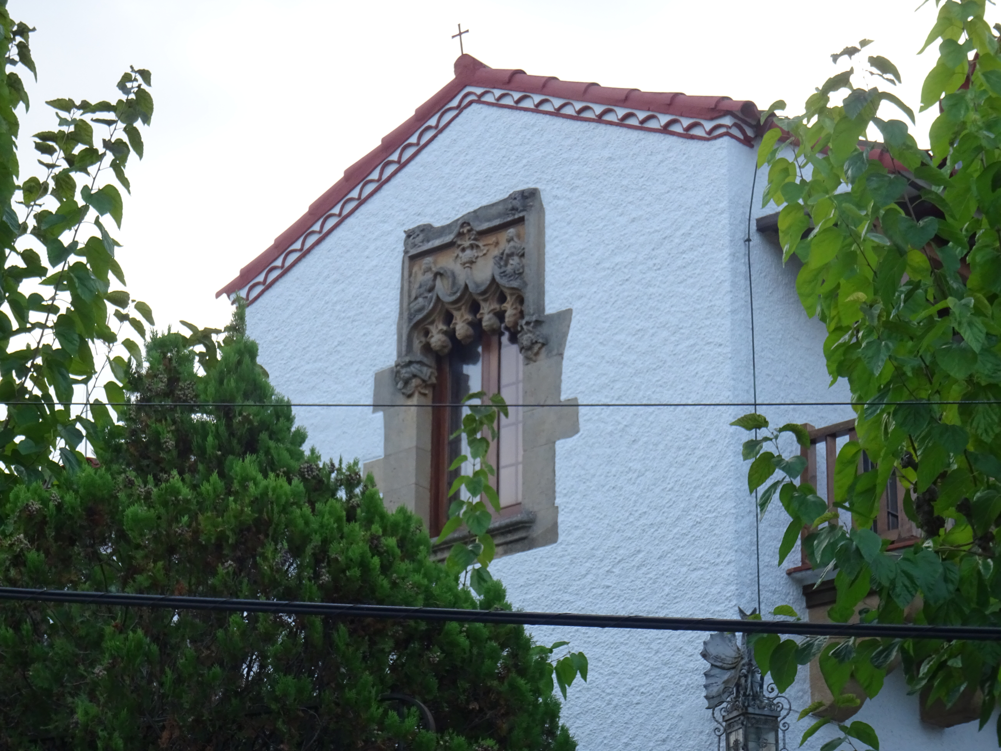 Les façanes estan arrebossades i pintades de blanc, i presenten una varietat d'obertures. En una d'elles hi trobem una reproducció de la finestra gòtica de la masia de can Bell. A sota seu hi ha una altra finestra amb un arc coix. També hi trobem dues finestres amb arc de mig punt, amb un monjo o mainell d’imitació romànica, així com els pilars del porxo. A la façana hi ha un fanal de ferro forjat amb un drac alat d'estil pseudomodernista.