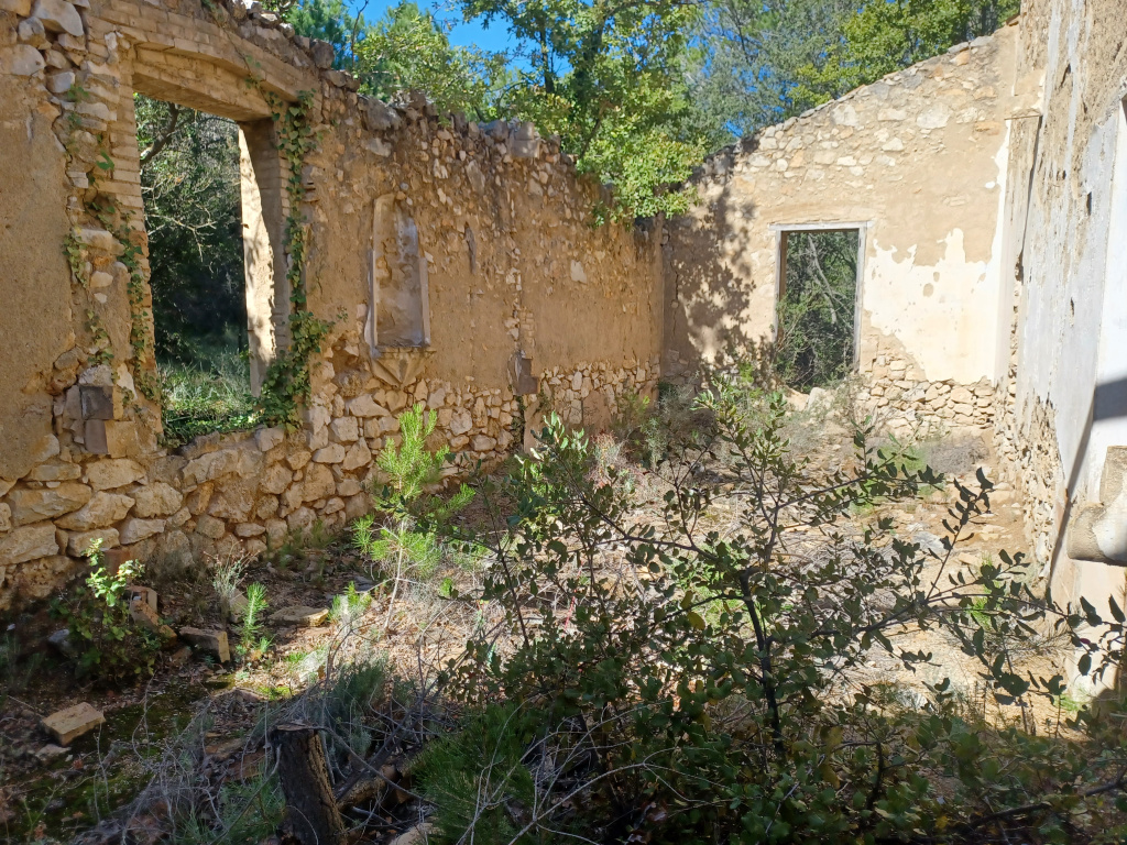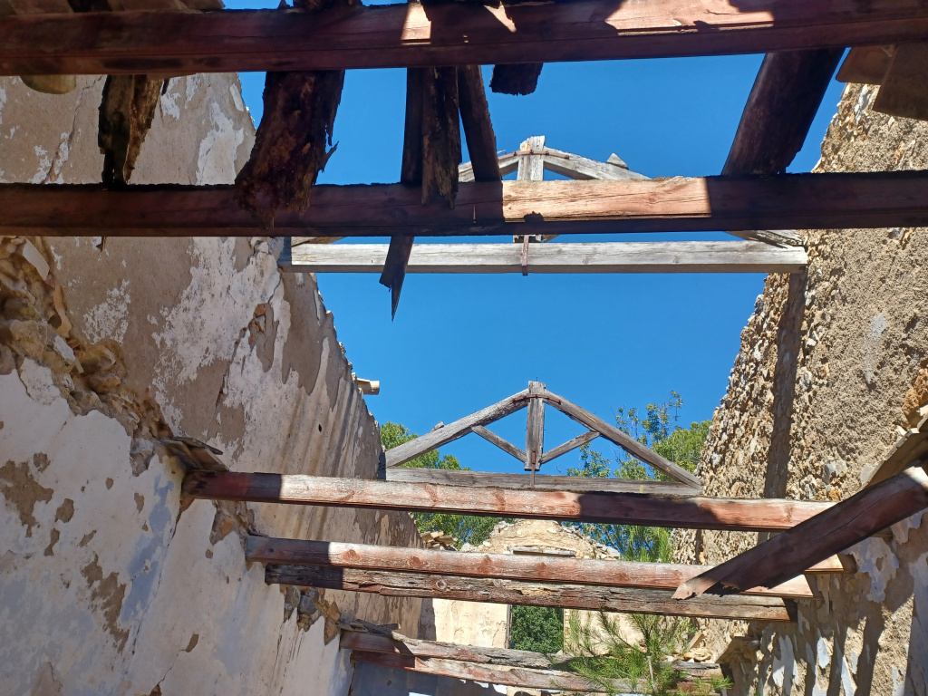 L’interior està enderrocat tot i que s’hi pot distingir la compartimentació interior en diferents estances. Conserva les encavallades de fusta i part de les bigues.