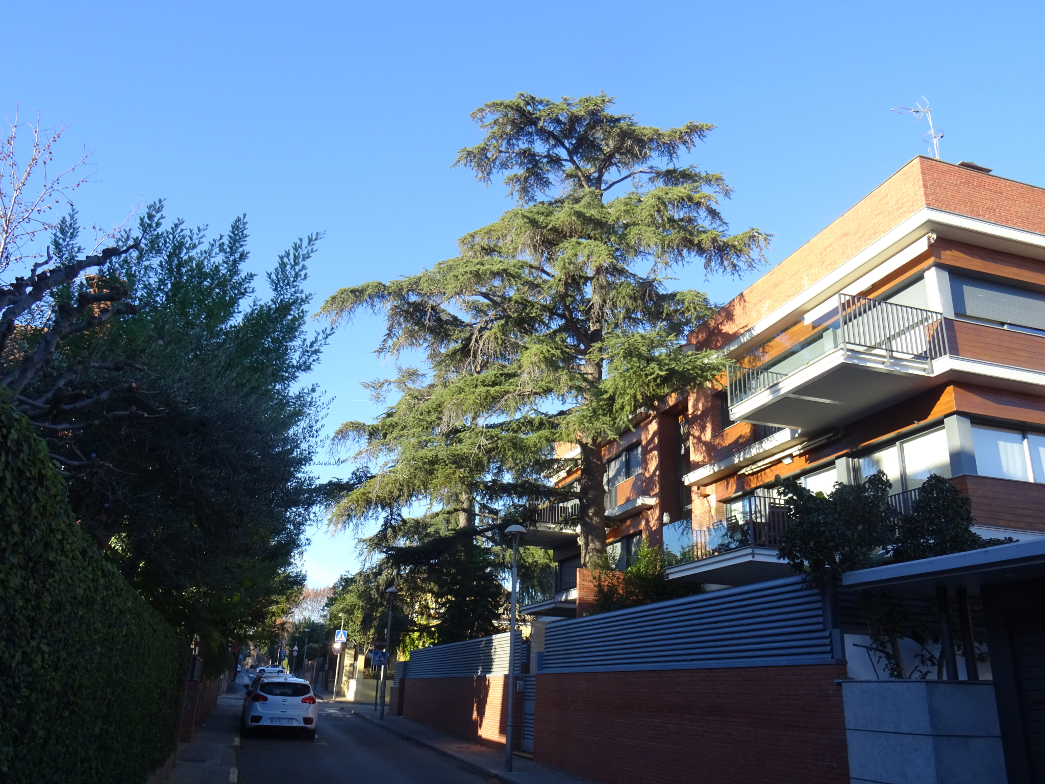 El Cedrus deodara és de la família de la pinaceae, originari del nord-oest de l’Himàlaia i de l’Afganistan. El nom comú en català és cedre de l’Himàlaia. Cedrus prové del nom llatí dels ginebrons, del grec kedros, ginebró, i deodara és una derivació del nom sànscrit devadora, arbre dels Déus, per la vinculació d’aquest arbre amb els objectes sagrats. L’arbre pot arribar als 60 metres d’alçada i entre els 8 i els 20 metres d’amplada, amb un port piramidal. L’escorça és de color gris fosc, llisa i escamosa. Les fulles són acícules, llargues, de més de 5 centímetres, primes, rígides i agrupades entre 20 i 50 agulles.