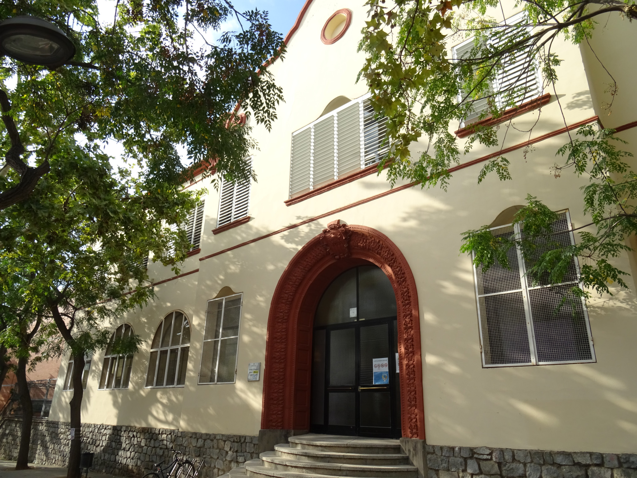 A la part posterior de l'edifici (costat sud) hi ha volums sobresortints. L'any 1980 es van enderrocar els edificis laterals perquè es trobaven en estat ruïnós. Aleshores es va annexar una nova ala d'aules que quedà perfectament integrada a l'antic edifici.