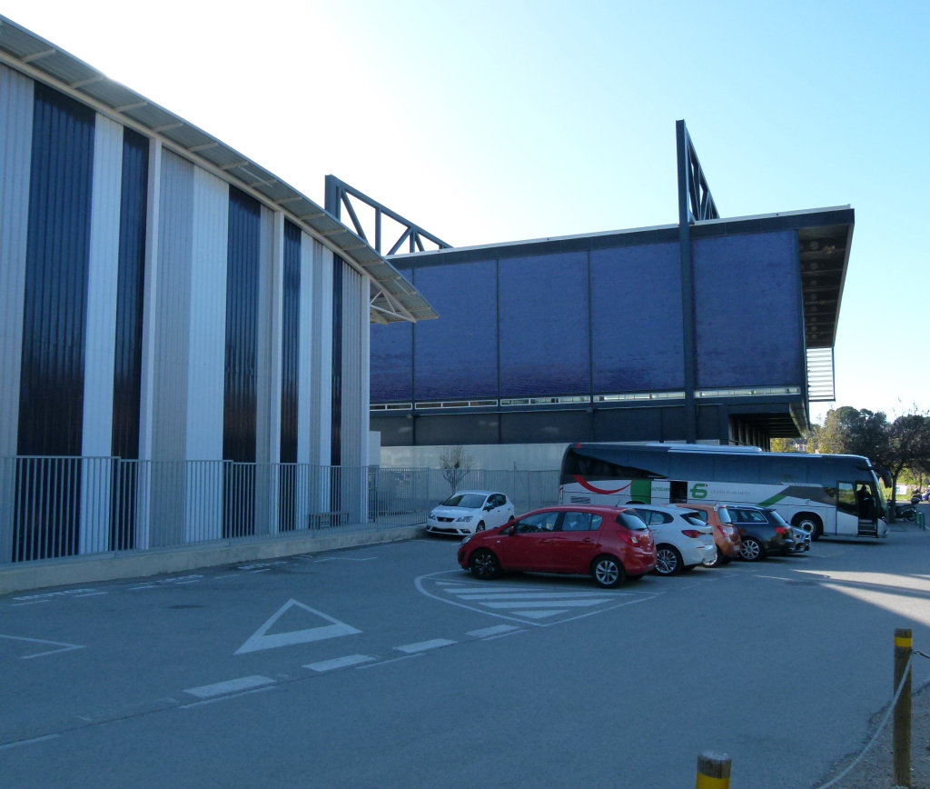 Edifici de grans dimensions, de disseny funcional i línies senzilles, destinat a la pràctica de diferents disciplines esportives. La construcció inaugurada l’any 2001, que aprofita un edifici preexistent, presenta una estructura vista d’armadures d’acer, i policarbonat i maó esmaltat en color blau pels tancaments exteriors, que permeten l’entrada de la llum natural als diferents espais interiors.