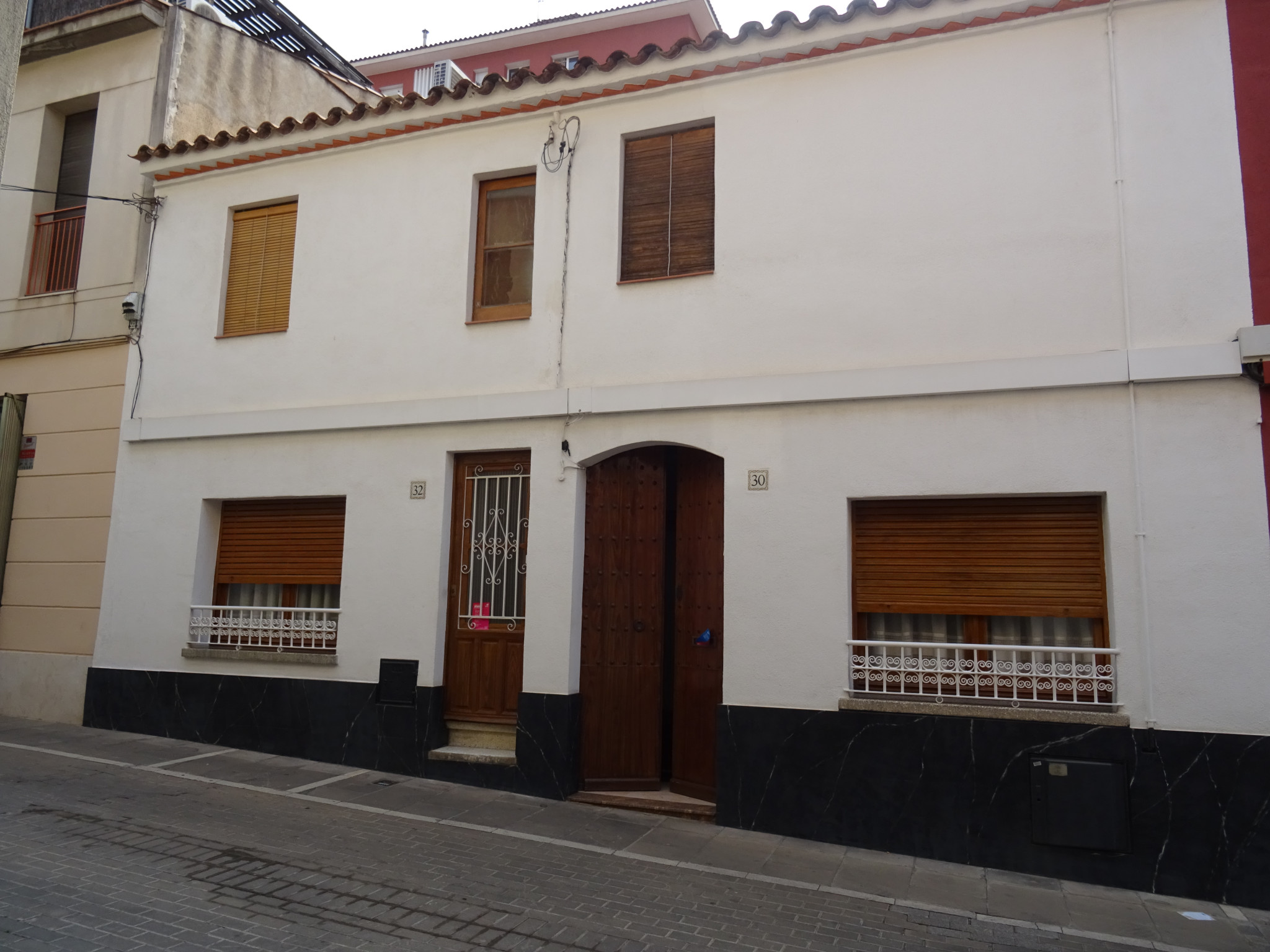La casa número 30 (a la dreta) té el portal d'entrada, amb arc carpanell, situat a l'esquerra i, a la dreta, un finestral. Al primer pis hi ha una finestra sobre el mateix eix que el portal.