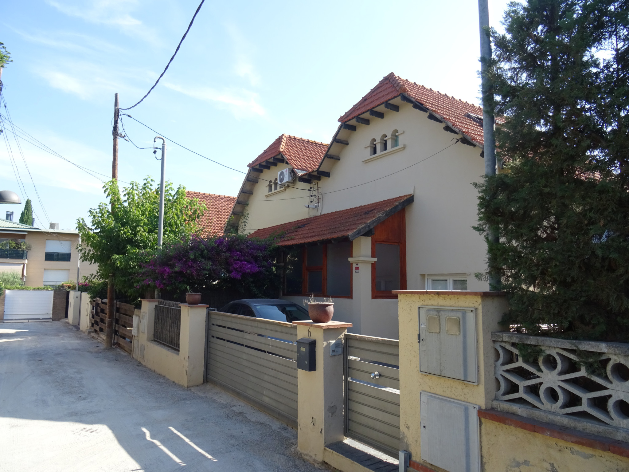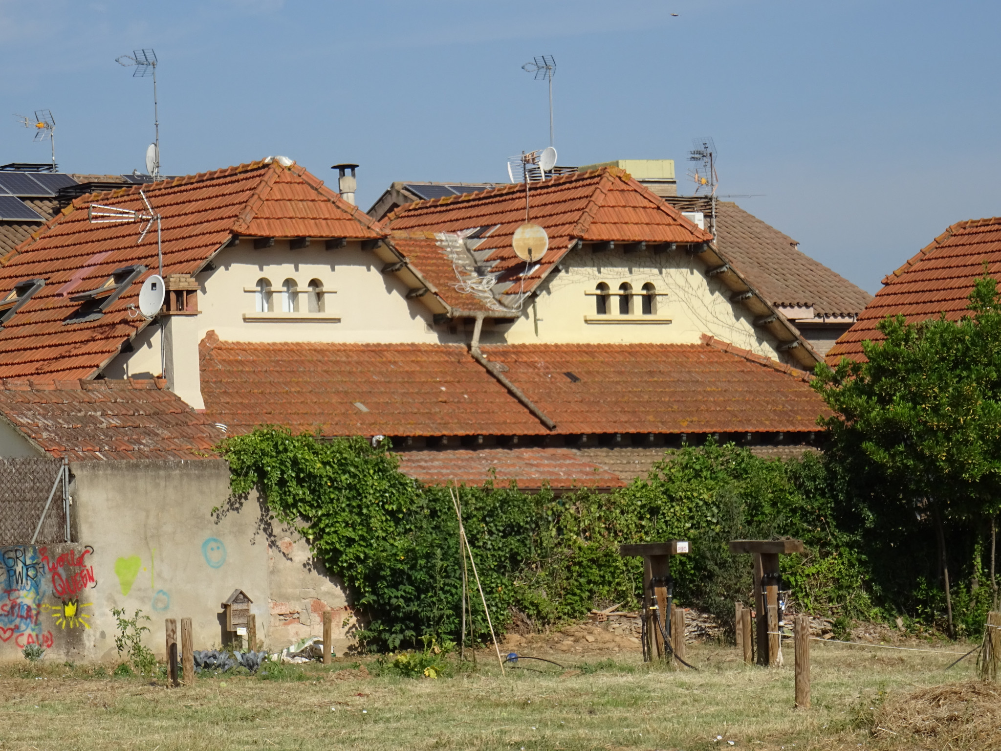 Les façanes principals de cada parella de xalets comparteixen un porxo sustentat per tres pilars quadrats amb una imposta superior. Al damunt s'hi recolza un arquitrau de fusta i una teuladeta. Al nivell de les golfes presenten tres finestretes amb arc de punt rodó. A la coberta es combinen els aiguavessos d'extrems truncats, en els careners perpendiculars a les façanes, amb uns aiguavessos en paral·lel a les façanes, que es troben a les juntures entre xalets. Els ràfecs són decorats amb caps de biga.